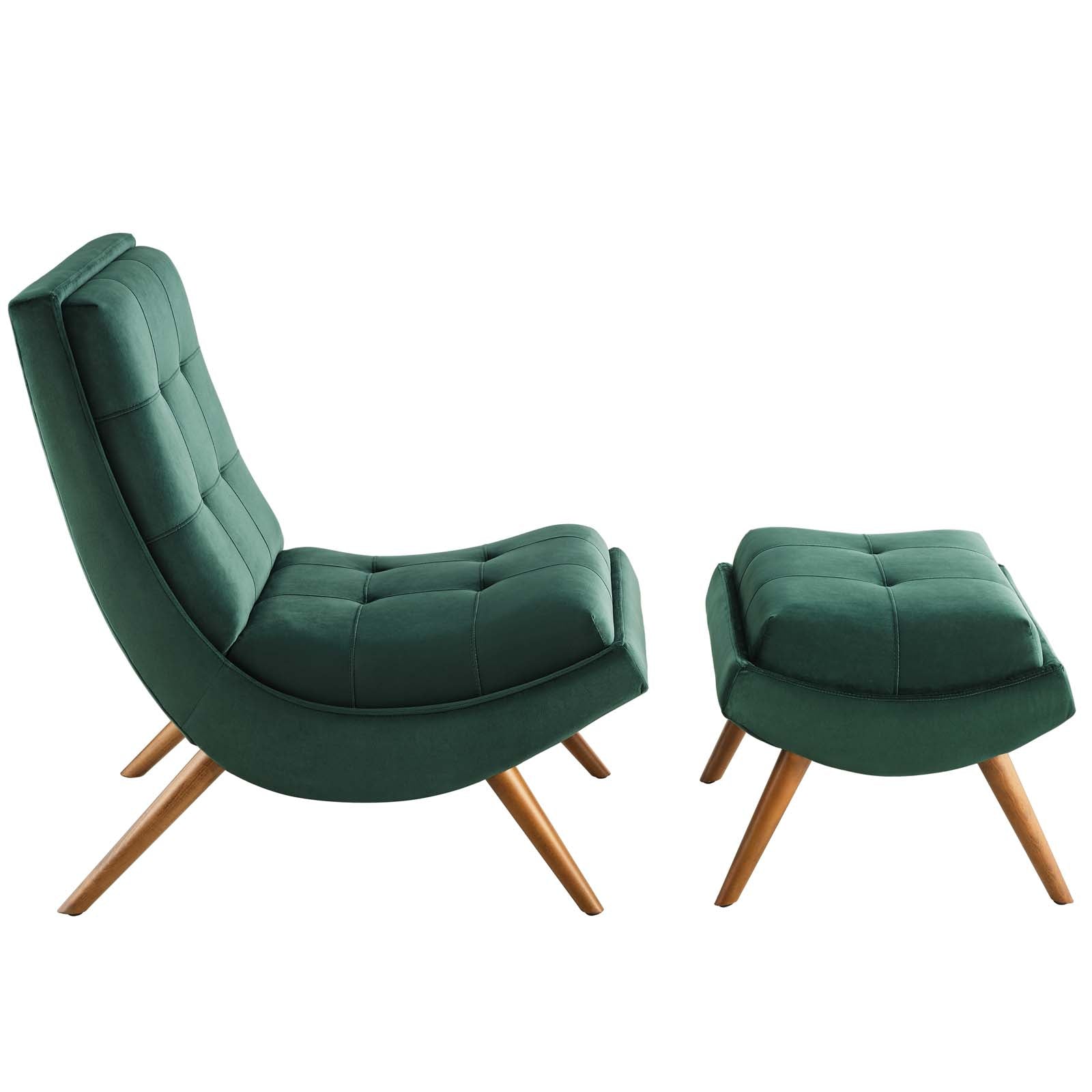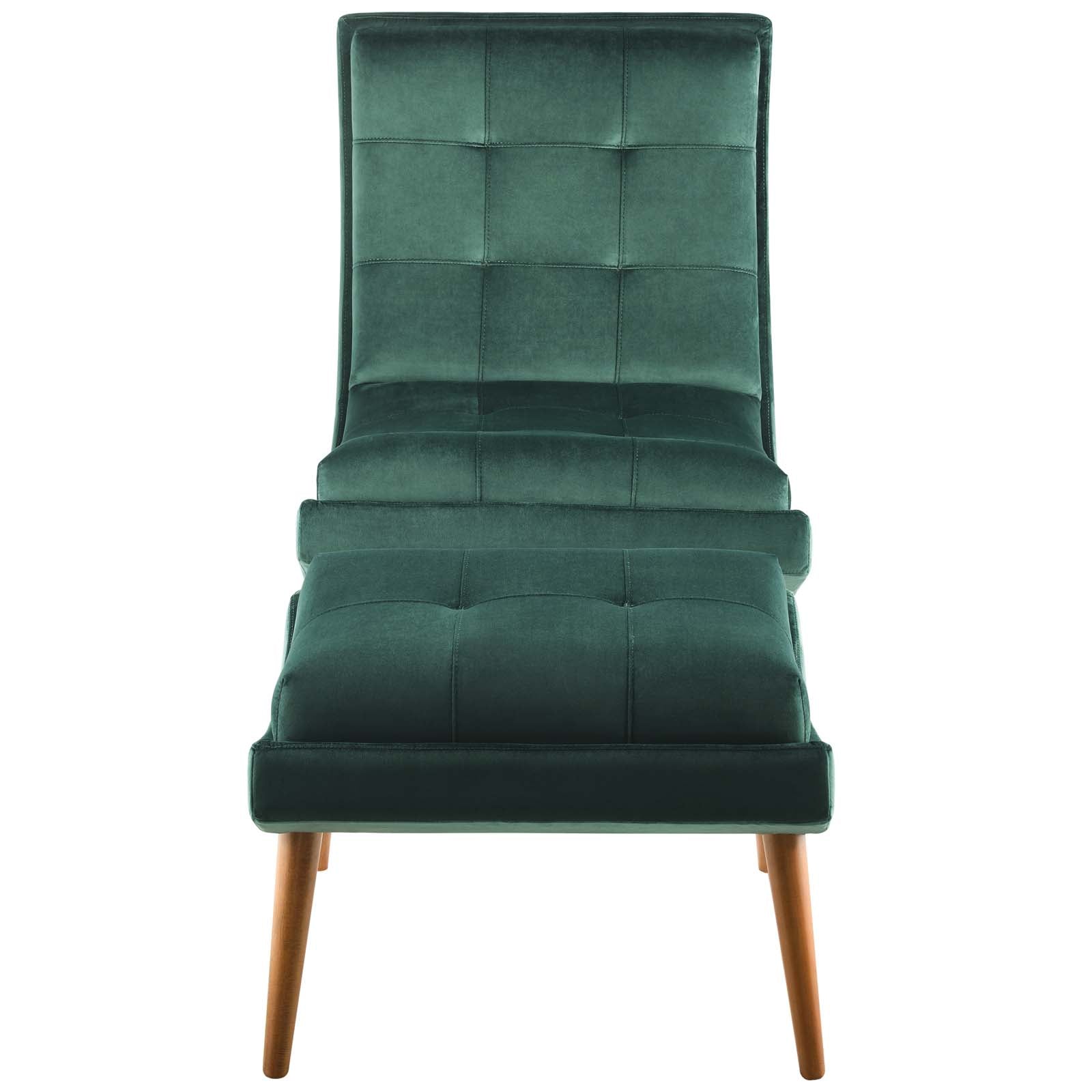 Ramp Upholstered Performance Velvet Lounge Chair and Ottoman Set, Green