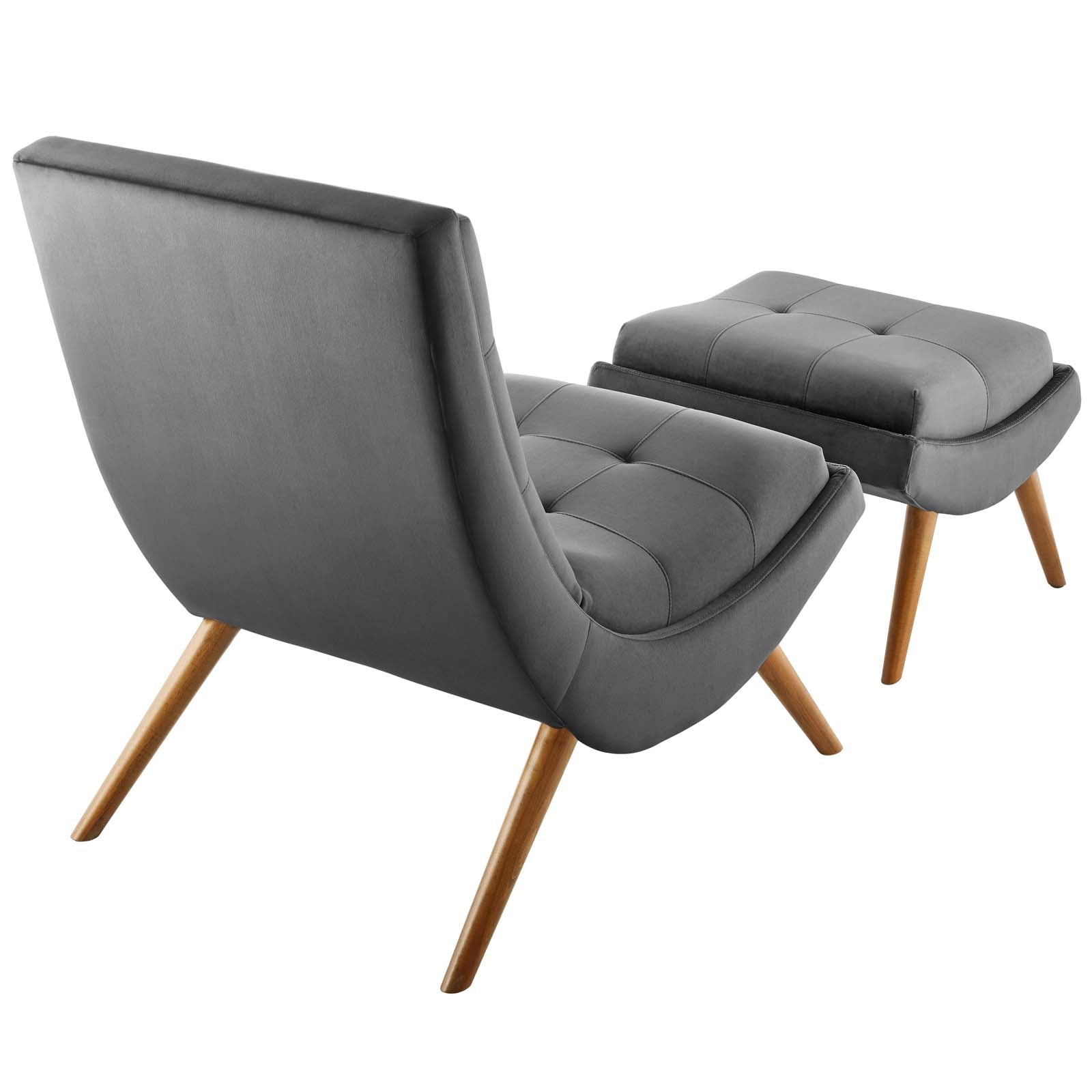 Ramp Upholstered Performance Velvet Lounge Chair and Ottoman Set, Gray