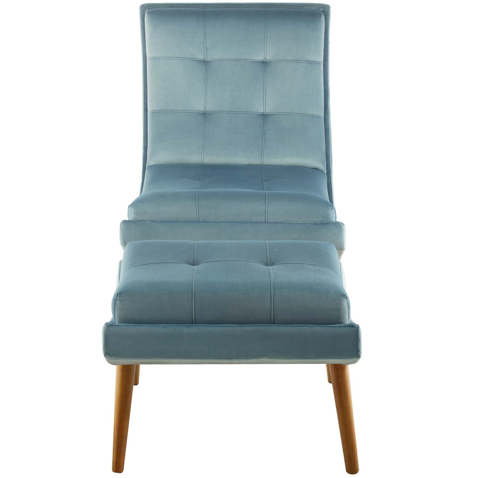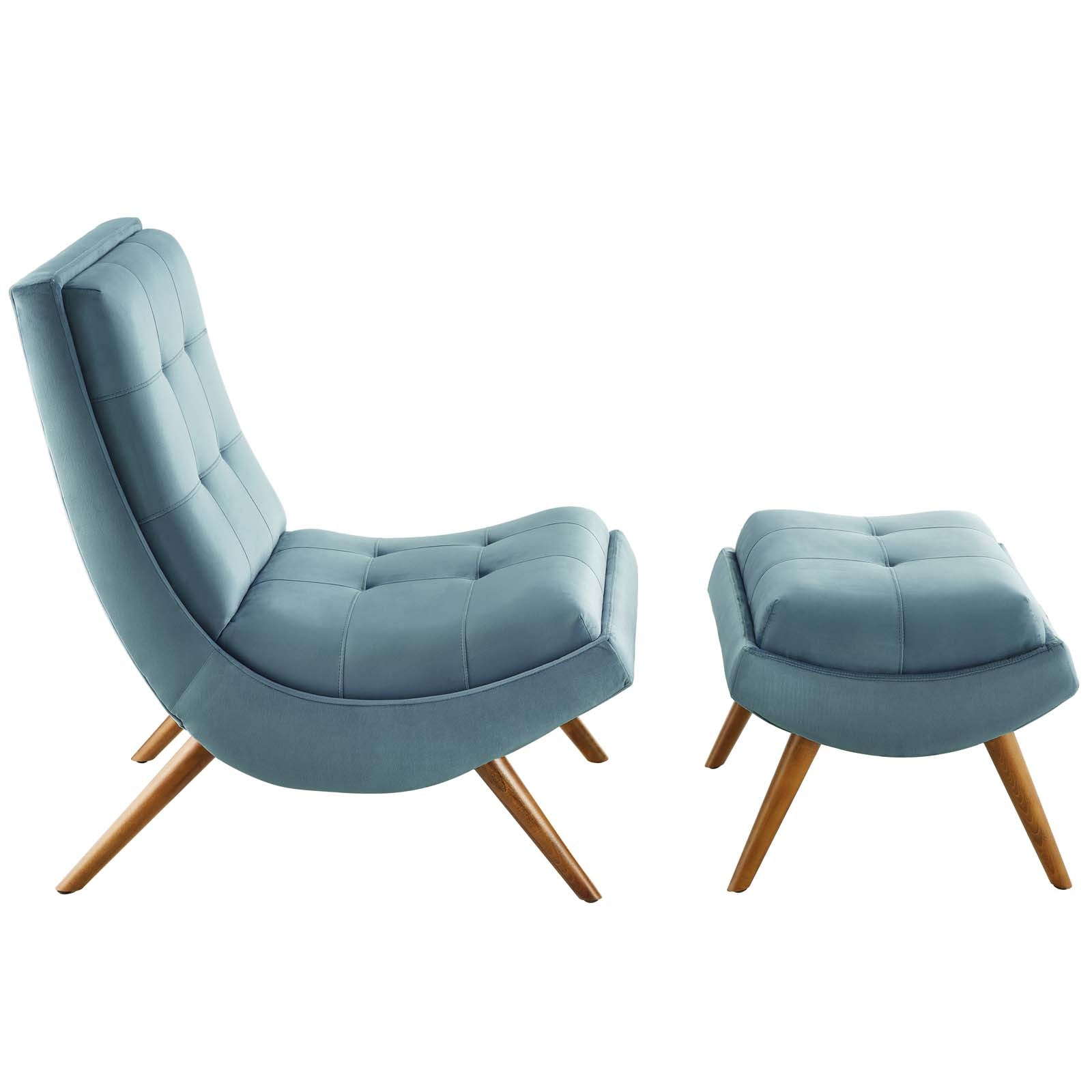Ramp Upholstered Performance Velvet Lounge Chair and Ottoman Set, Light Blue