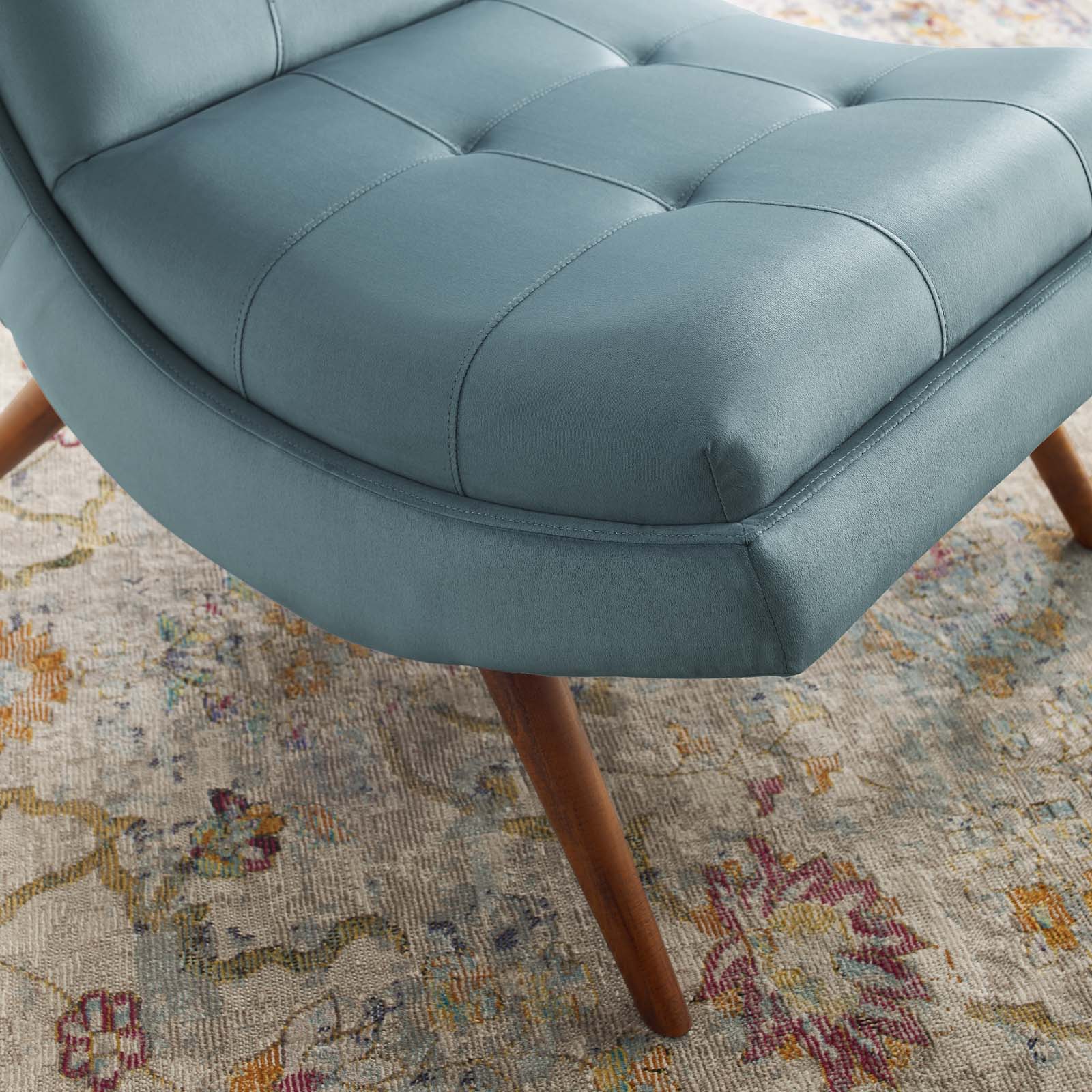 Allow yourself a time of complete relaxation. Ramp Performance Velvet Upholstered Lounge Chair and Ottoman set were designed to serve as a carefree and comfort-filled way to spend your leisure time. Relax as you find yourself luxuriating on Ramp’s soft, stain-resistant performance velvet upholstery that covers dense foam padding for support and restful opulence. Ramp’s durable and soft upholstery has eye-catching tufted button accents and splayed, cherry stained wood legs. Sturdily constructed from solid wood and plywood, the Ramp Performance Velvet Lounge Chair and Ottoman series is perfect for modern living rooms, lounge rooms, offices, or other seating areas. Set Includes: One - Ramp Upholstered Lounge Chair and Ottoman Set