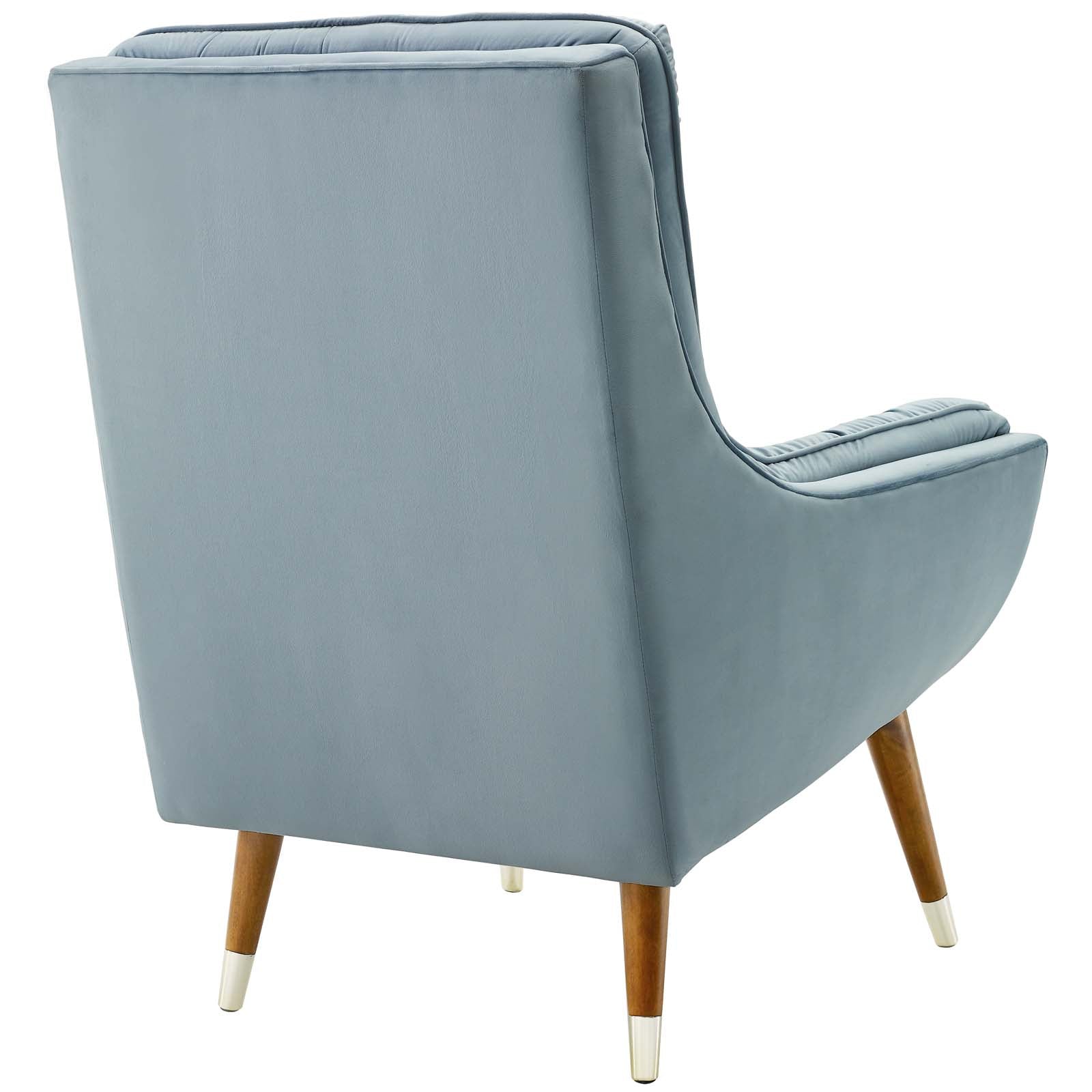 Upgrade your leisure time with the elegance and luxury of Suggest Performance Velvet Lounge Chair. Upholstered in stain-resistant performance velvet, Suggest delivers sophistication with deep button-tufting, flared armrests, and splayed wood legs with gold metal sleeves. The rich texture of this armchair is soft to the touch, while plush dense foam cushion padding, a deep seat pocket, non-marking foot caps, and gentle recline, provide unparalleled support while reading, resting, relaxing, or conversing. A chic mid-century inspired accent or lounge chair for the living room, bedroom or reading nook, Suggest makes a supremely comfortable addition to the modern home. Chair Weight Capacity: 331 lbs. Set Includes: One - Suggest Button Tufted Lounge Chair