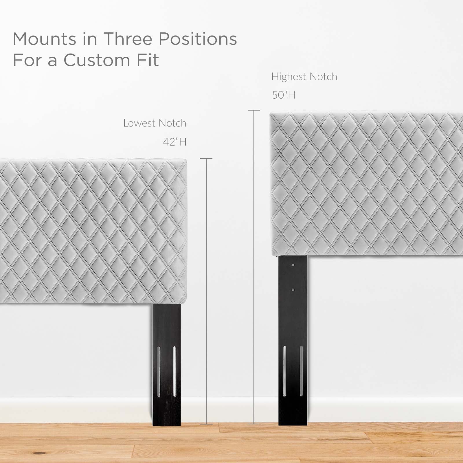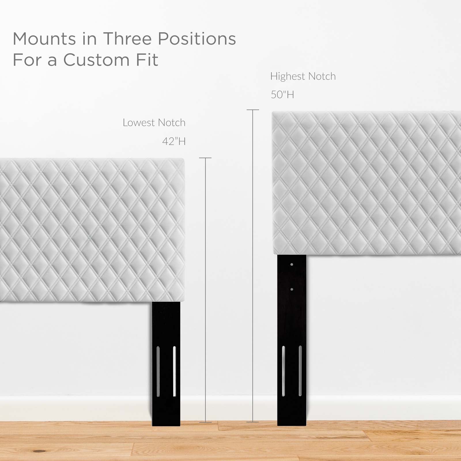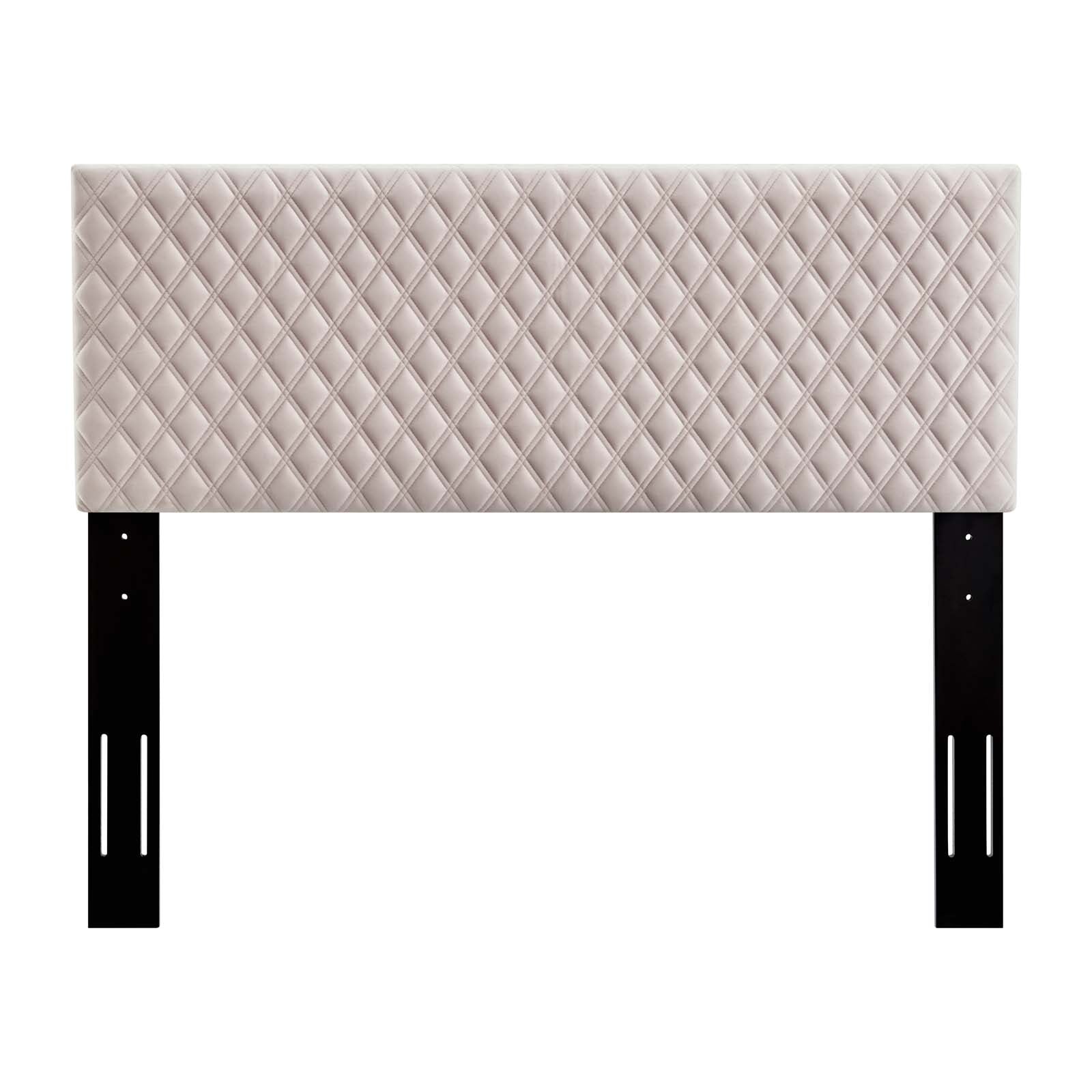 Customize your bedroom space with the Angela Tufted Diamond Lattice Performance Velvet Upholstered Twin Headboard. The elegant textured diamond pattern combines with the soft and stain-resistant performance velvet upholstery for a standout headboard for twin beds. The Angela Twin Headboard is height adjustable with three mounting positions. Solidly constructed from wood and plywood, dense foam padding supports this twin headboard for a comfortable experience reading, reclining, or conversing in bed. Set Includes: One - Angela Twin Headboard