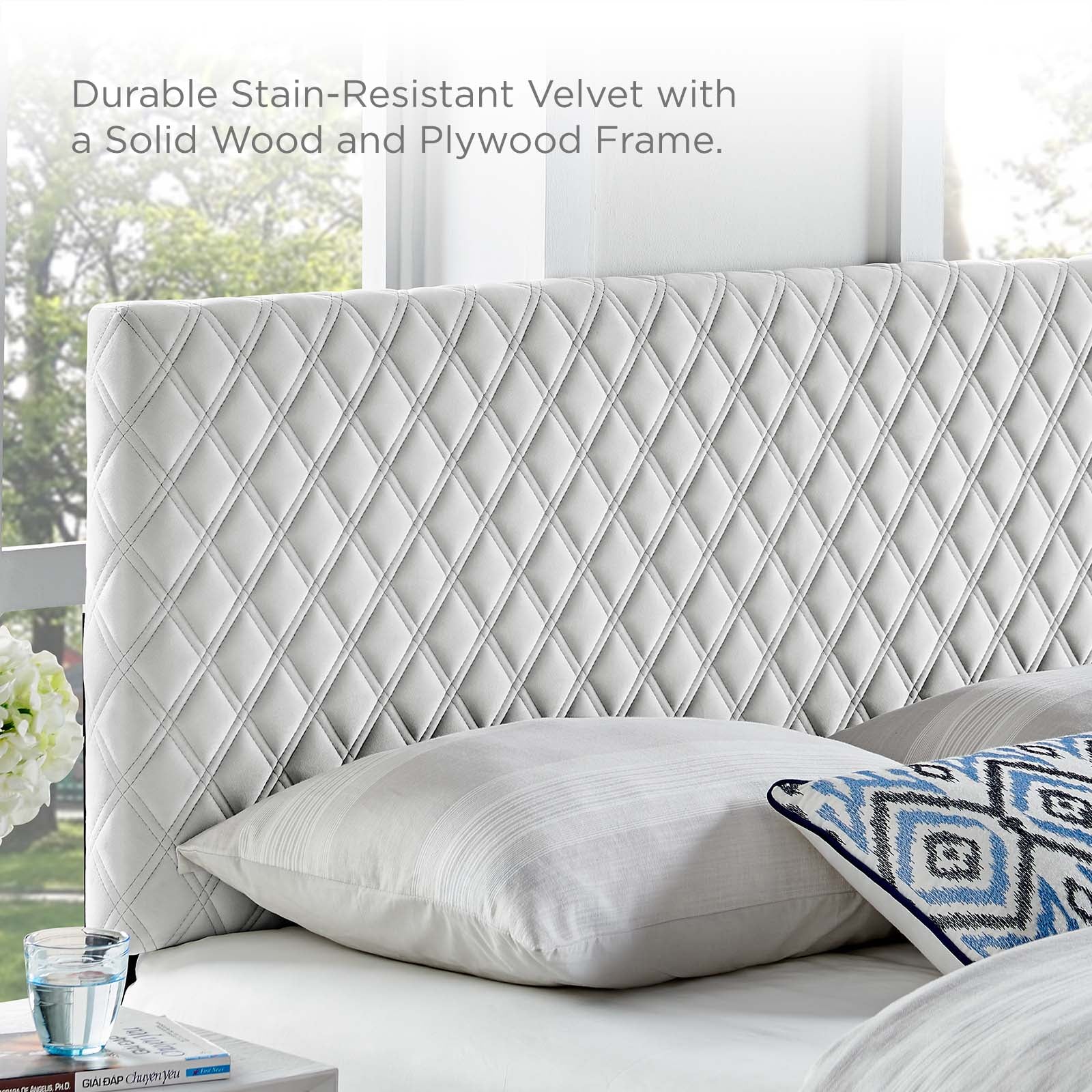 Angela Twin Performance Velvet Headboard, White
