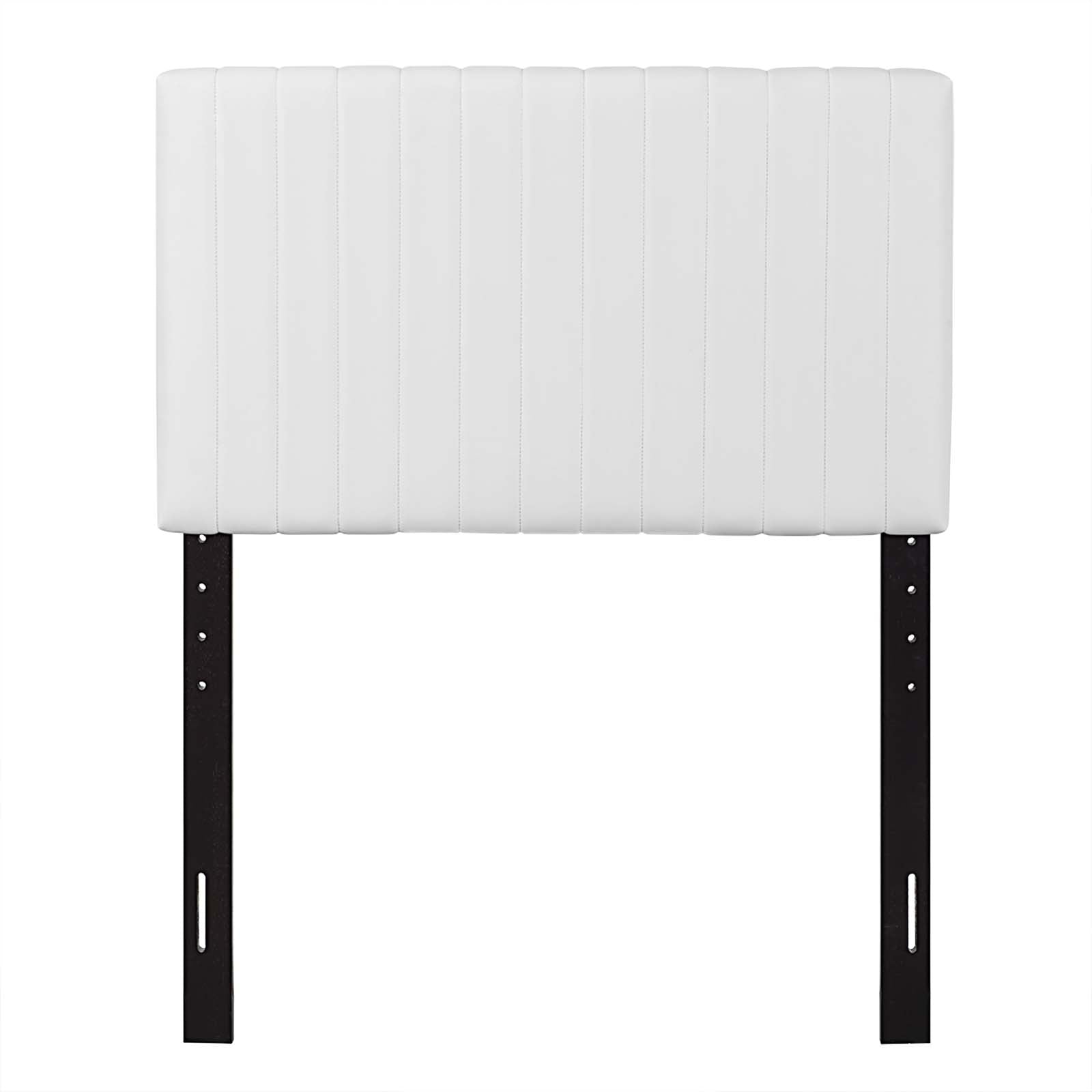 Refresh a kid's bedroom or college dorm with the Keira Twin Headboard. This elegant twin headboard makes a luxe statement with its channel tufting, smooth texture, and chic squared profile. Boasting a modern design with timeless appeal, this upholstered headboard is covered in luxurious faux leather and features a solid wood and particleboard construction that’s durable and long-lasting. Lean back and relax while reading or watching TV in bed with the dense foam padding on this upholstered twin headboard. Fits twin size beds. Set Includes: One - Keira Twin Headboard