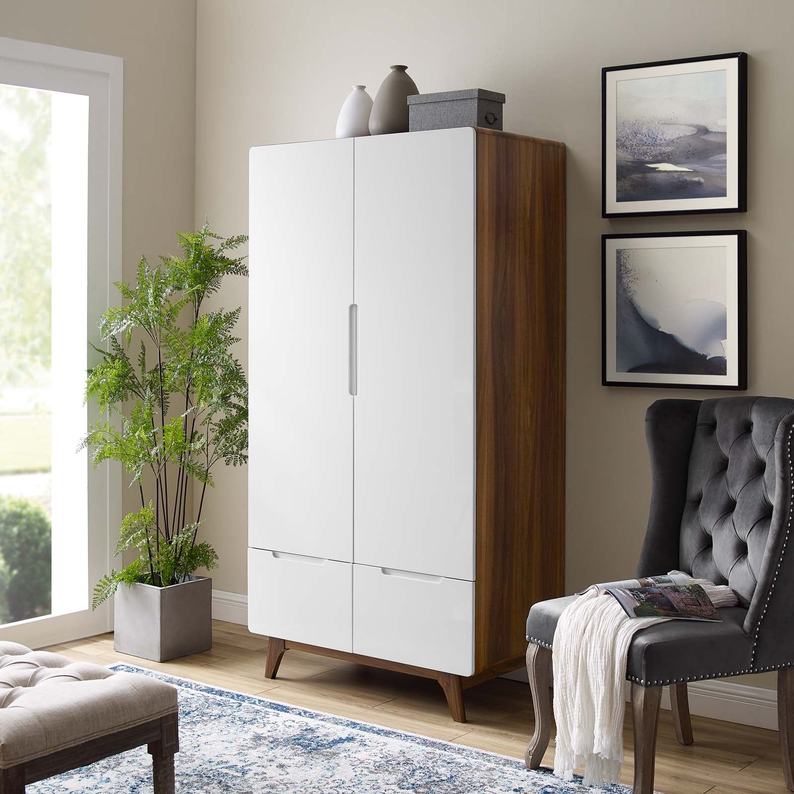 Mid-Century Origin Wardrobe Cabinet Storage Armoire, Walnut - Wantism