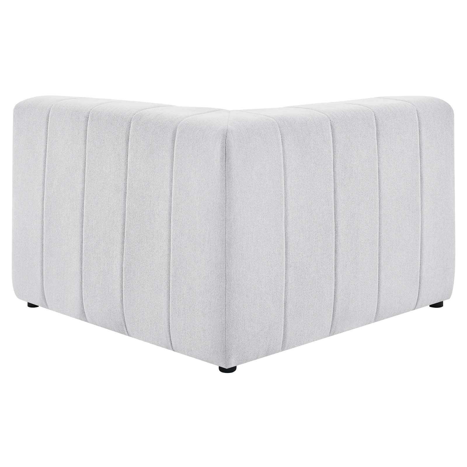 Indulge in comfort and relaxation by creating a custom living room and lounge area with the Bartlett Upholstered Fabric Corner Chair. Featuring subtle channel tufting, rounded corners, and soft polyester fabric upholstery, this sectional sofa corner chair brings retro modern style and contemporary allure to your living space. Dense foam padding and a pocket coil spring system in the cushions offer a luxe seating experience with premium support and comfort. With a sturdy frame crafted from solid wood and plywood, this living room chair features modular connectors to keep each sectional sofa piece secure and non-marking foot caps to protect flooring. Chair Weight Capacity: 331 lbs. Set Includes: One - Bartlett Corner Chair