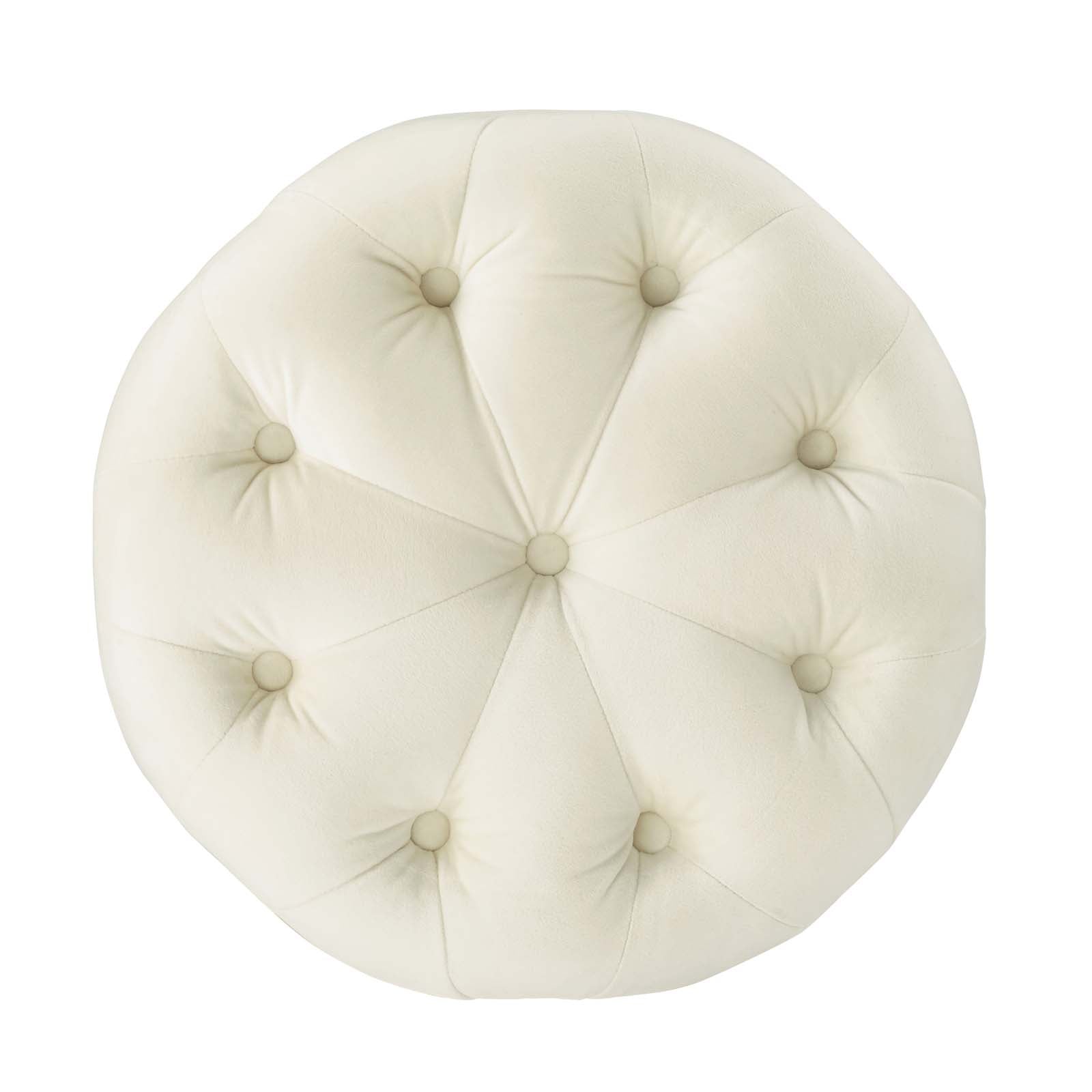 Amour Tufted Button Round Performance Velvet Ottoman, Ivory