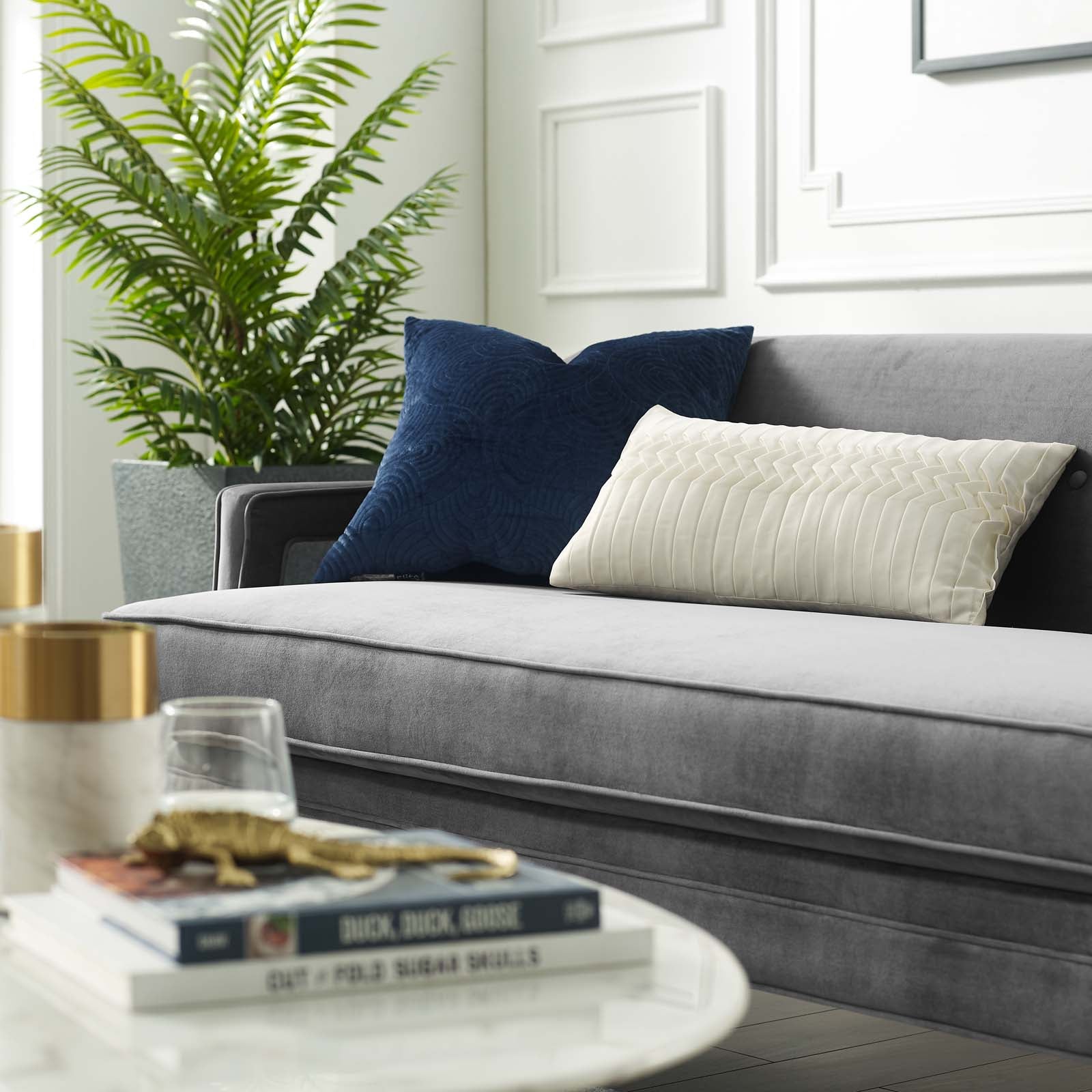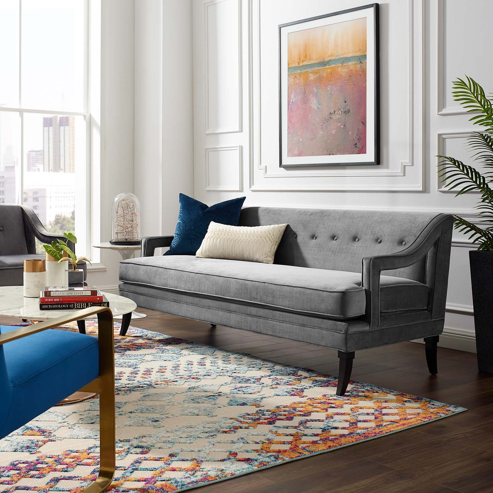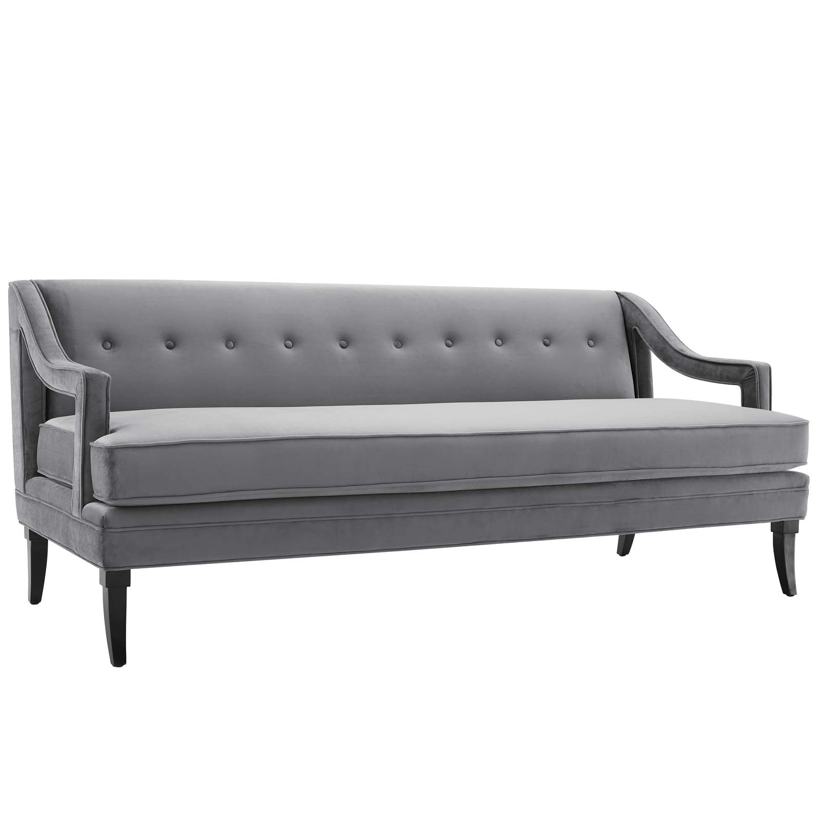 Concur Button Tufted Performance Velvet Sofa, Gray