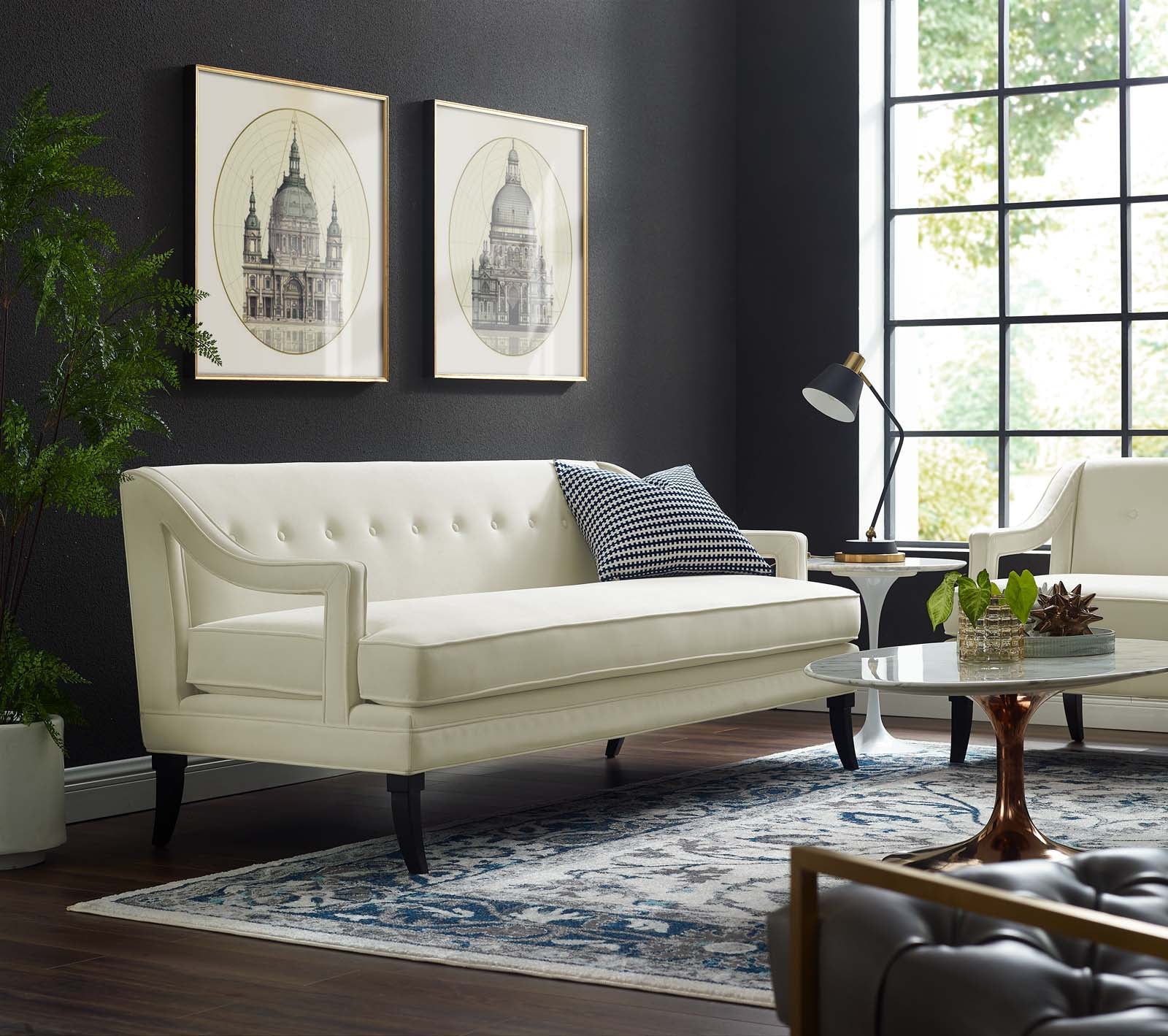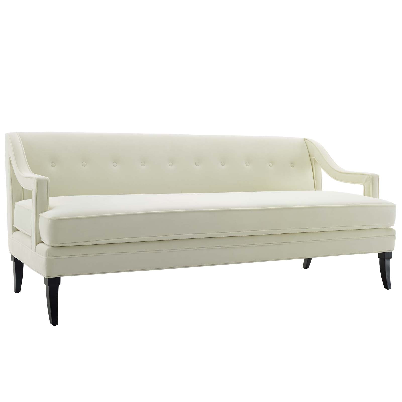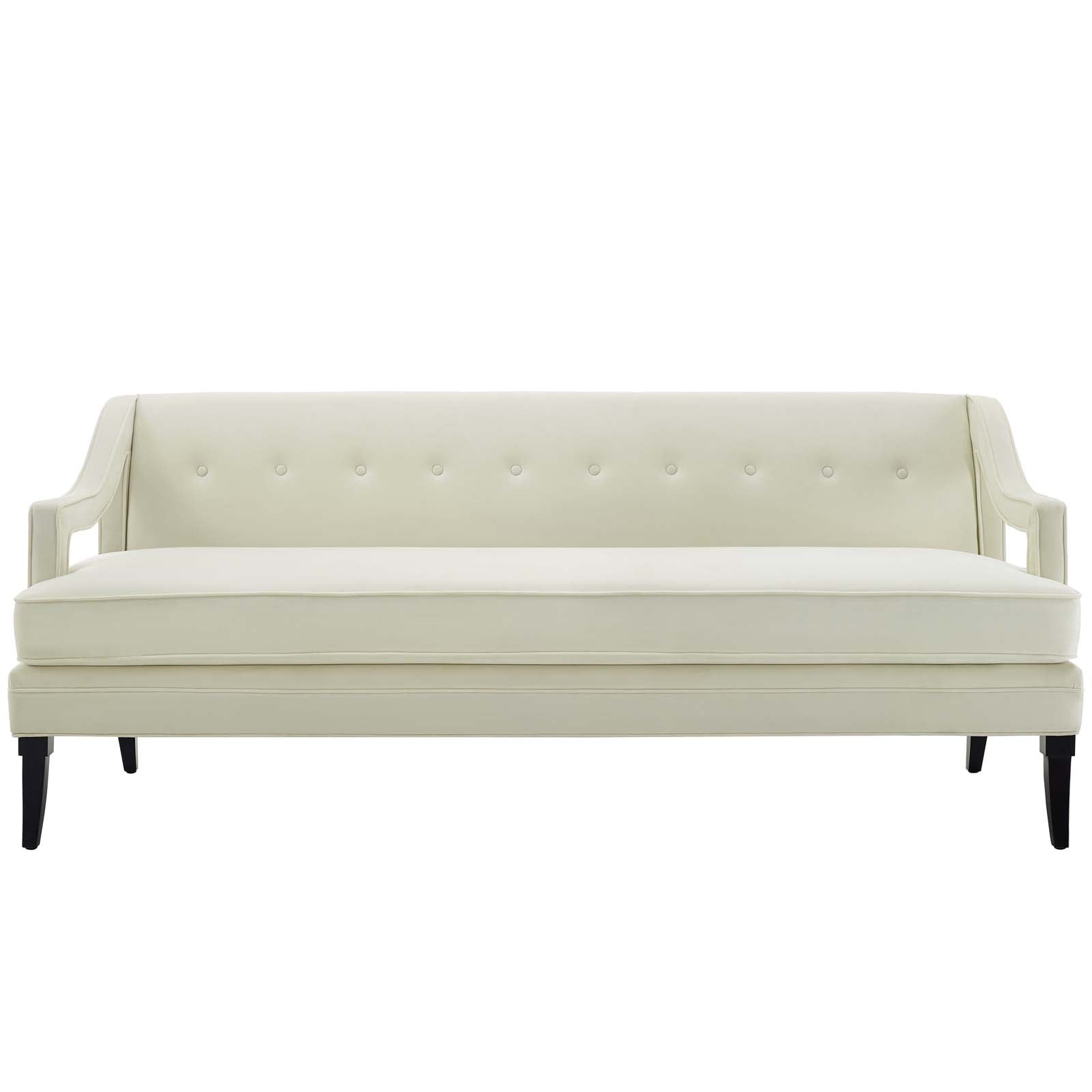 Concur Button Tufted Performance Velvet Sofa, Ivory