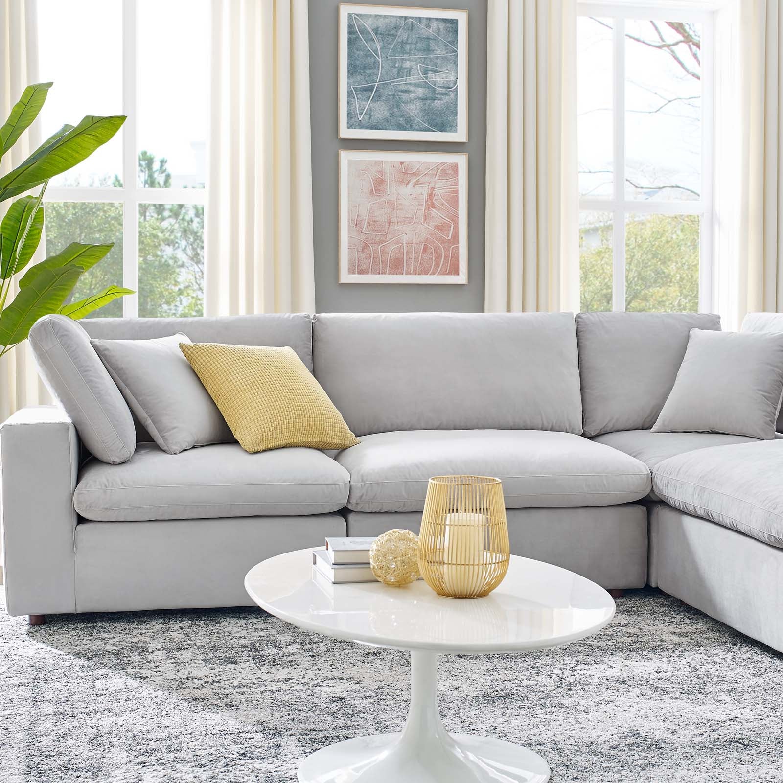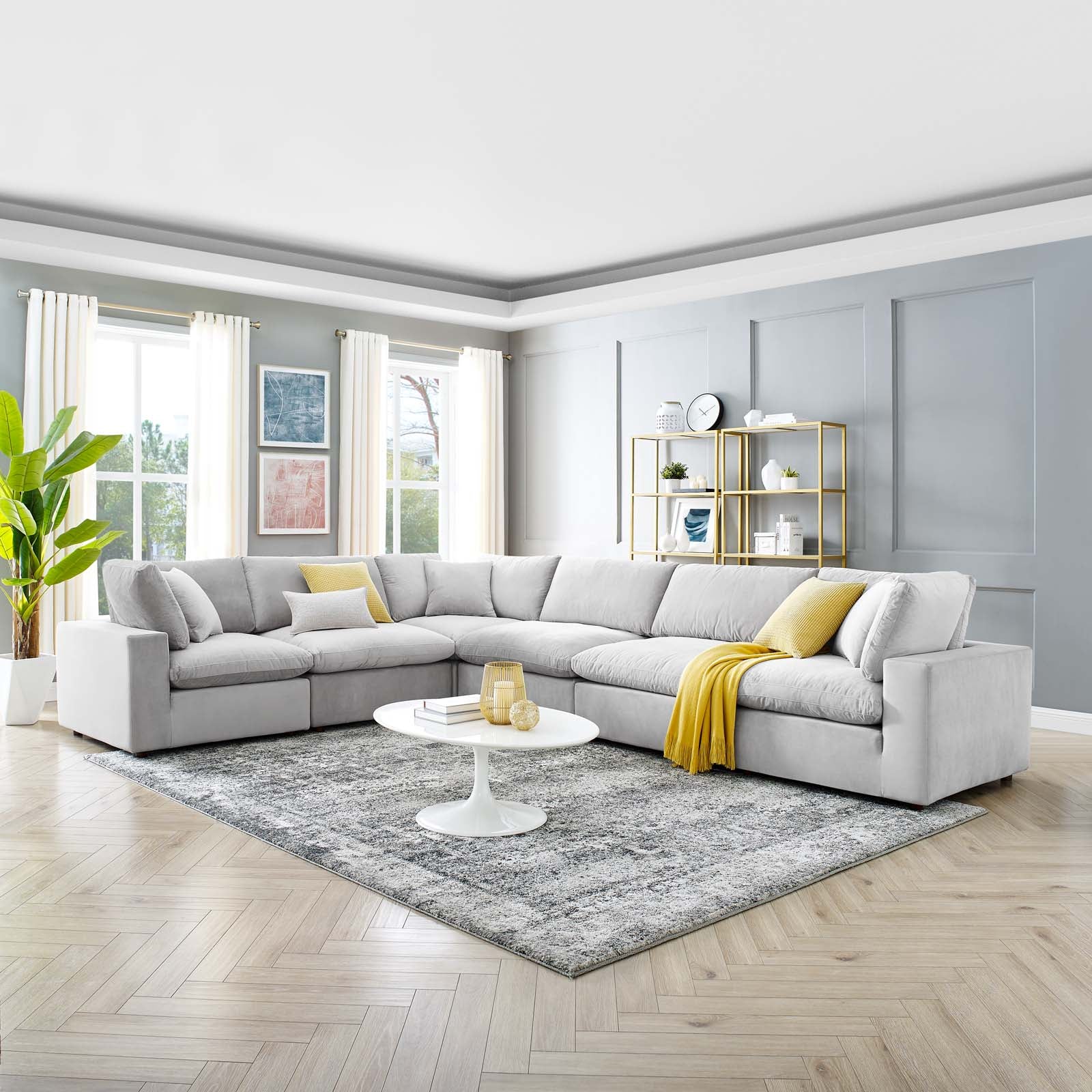 Commix Down Filled Overstuffed Performance Velvet 6-Piece Sectional Sofa, Light Gray