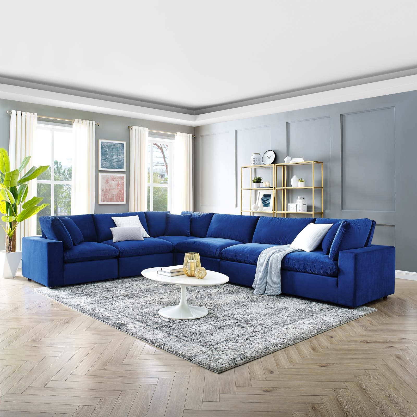 Commix Down Filled Overstuffed Performance Velvet 6-Piece Sectional Sofa, Navy