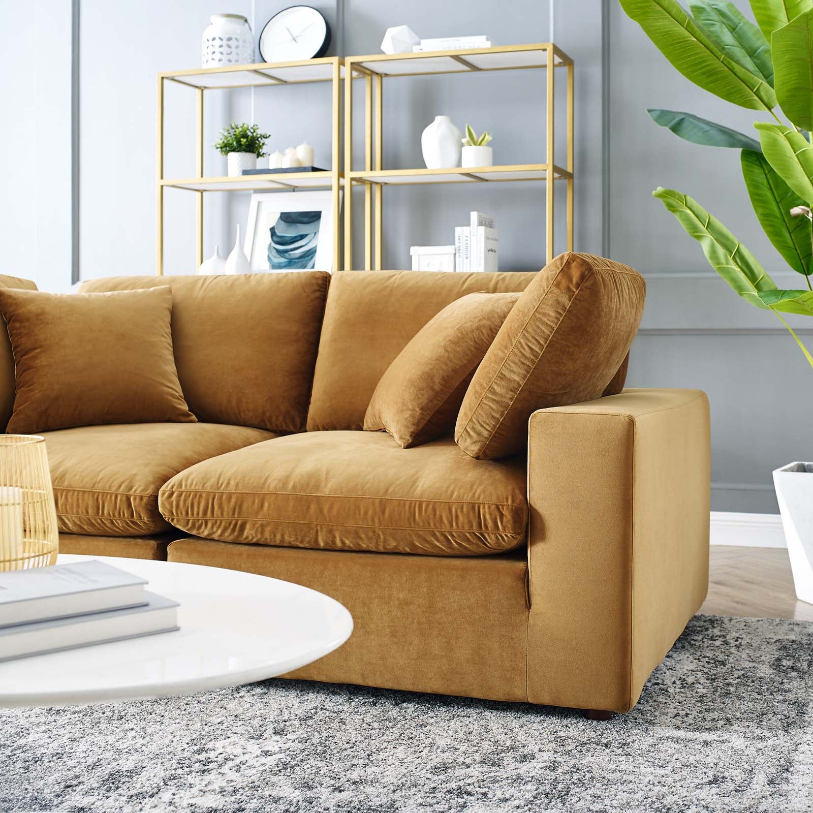 Commix Down Filled Overstuffed Performance Velvet Loveseat, Cognac