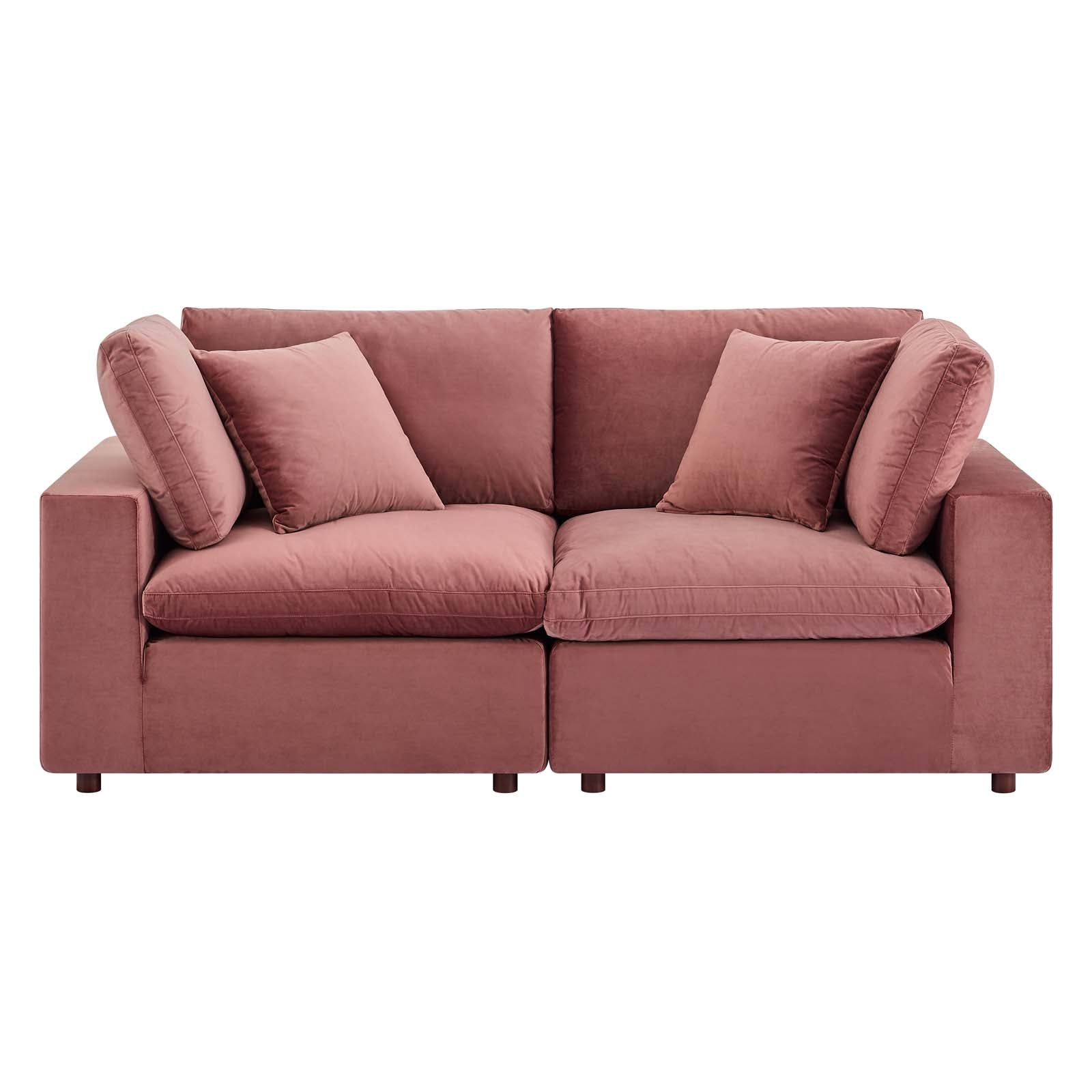 Commix Down Filled Overstuffed Performance Velvet Loveseat, Dusty Rose