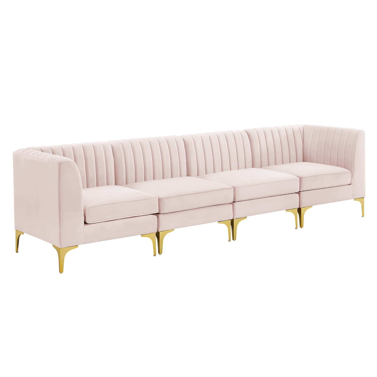 Triumph Channel Tufted Performance Velvet 4-Seater Sofa, Pink