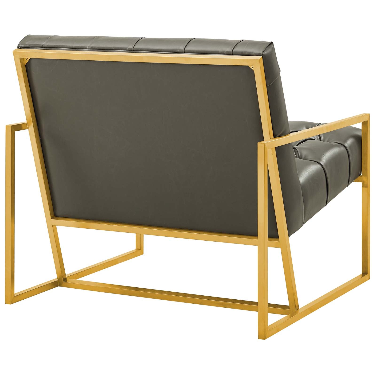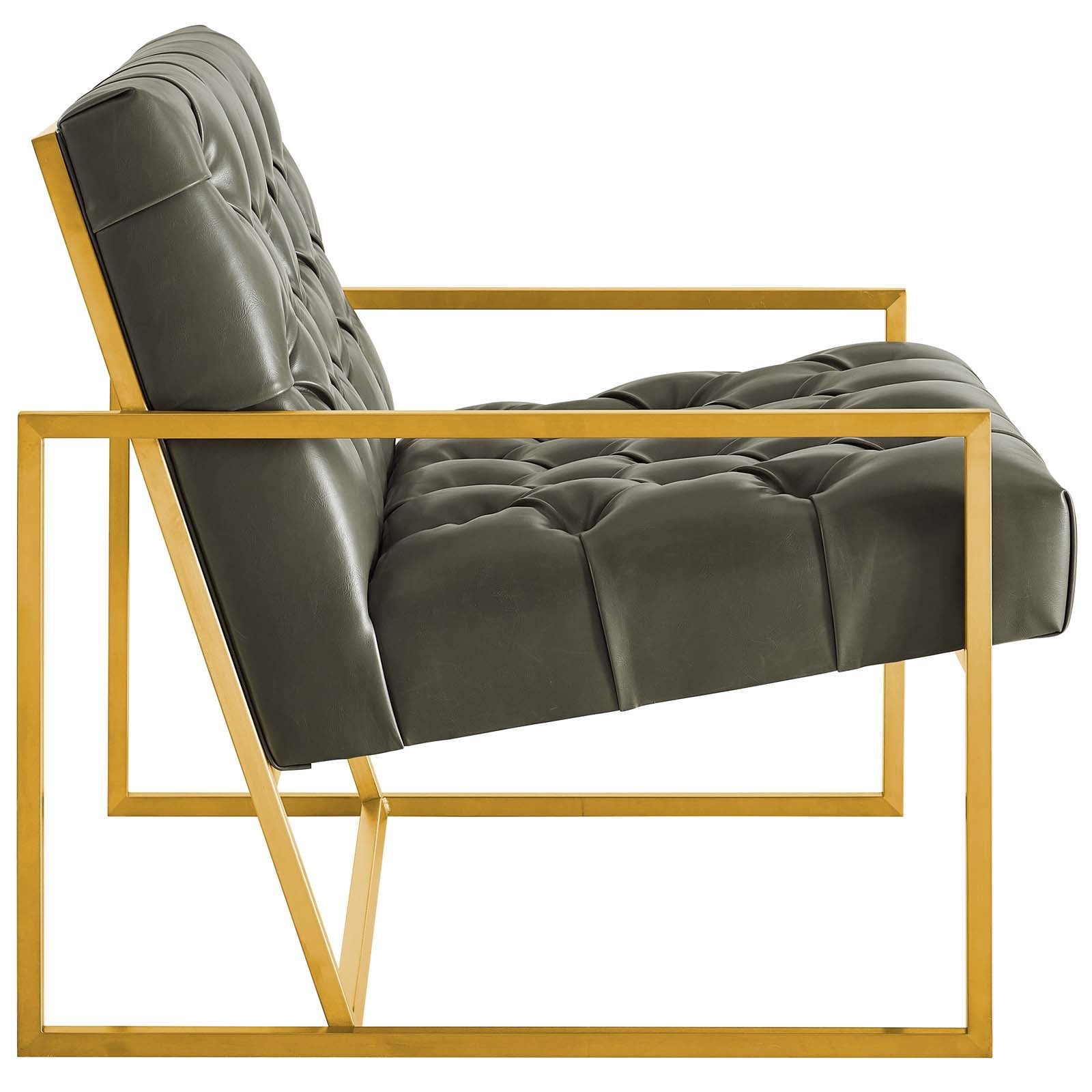 Bequest Antique Gold Stainless Steel Faux Leather Accent Chair, Gray