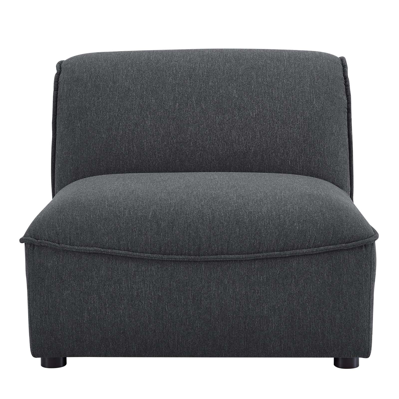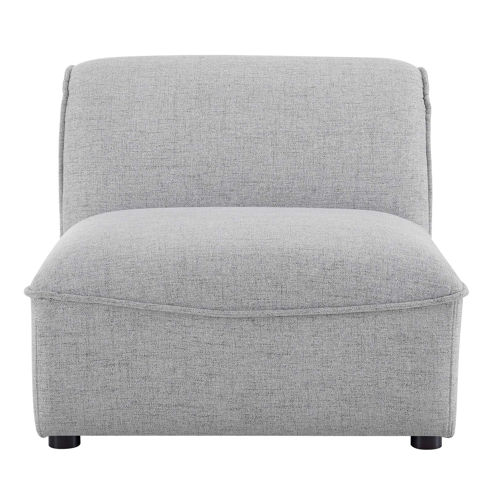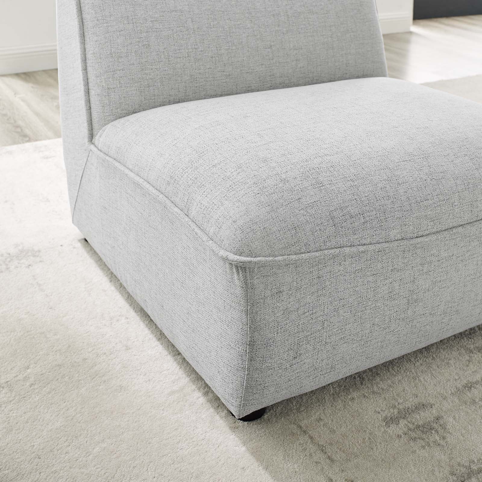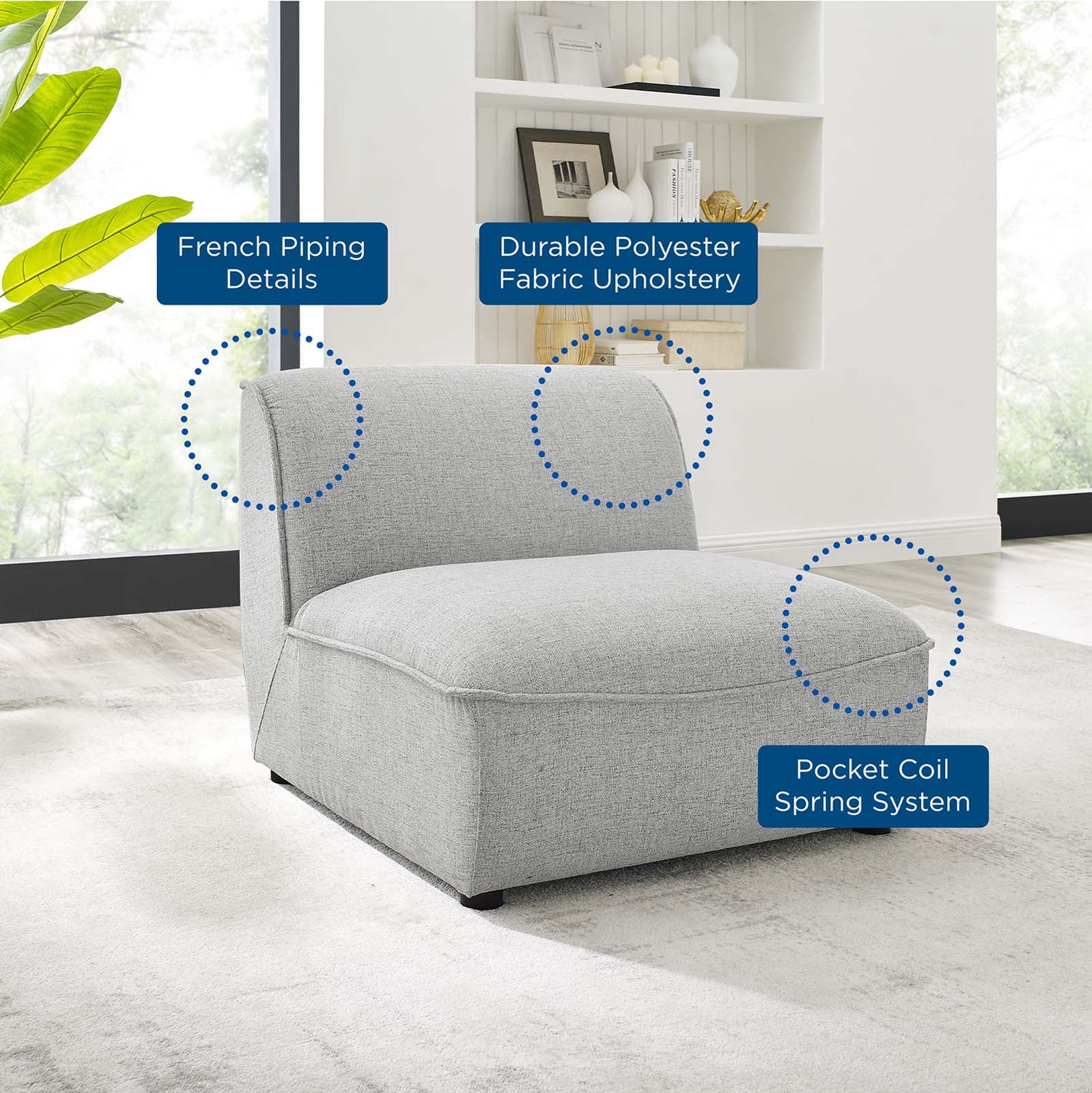 Indulge in cozy relaxation in the comfort of your own home with the Comprise Upholstered Armless Chair. A casual design accented with French piping details, this sectional sofa piece features dense foam padding, soft polyester upholstery and a pocket coil spring system to offer a premium seating experience. Solidly constructed with solid wood and plywood, this upholstered armless chair rests atop sturdy rubberwood legs with secure connectors between modular pieces. Create a custom living room or lounge area with the Comprise Living Room Furniture Collection. Chair Weight Capacity: 400 lbs. Set Includes: One - Comprise Armless Chair
