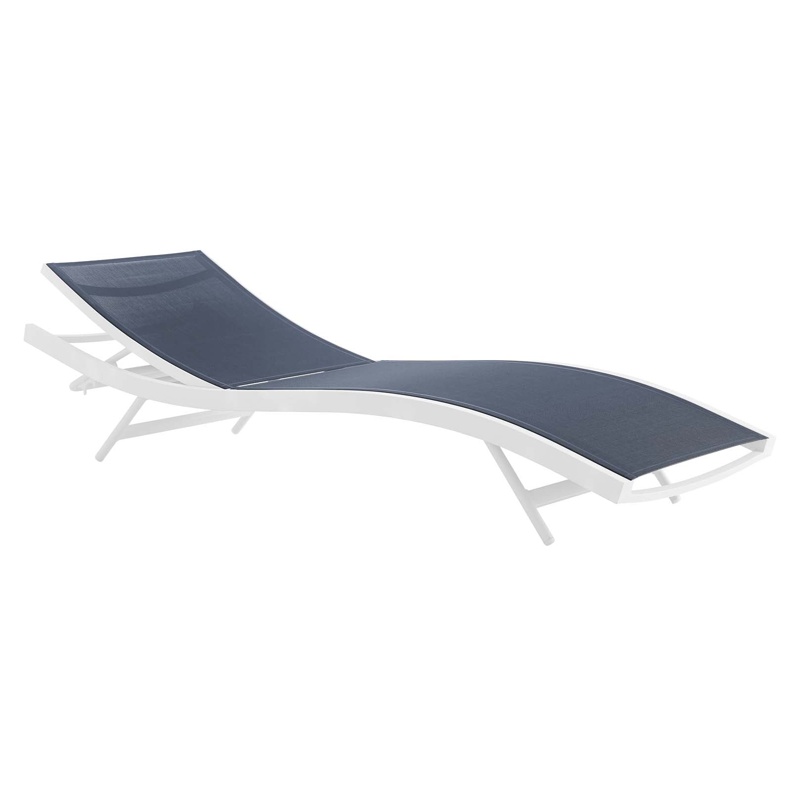 Enjoy warm sunshine and serene relaxation with the Glimpse Outdoor Patio Chaise Lounge Chair. A contemporary update to your outdoor living space, Glimpse comes with a breathable Textilene® mesh seat for ergonomic comfort and support, a long-lasting, powder-coated aluminum frame, and non-marking foot caps. Sit back and relax as you choose from four height adjustable recline positions. Perfect for the backyard, patio, or poolside, this outdoor lounger features sweeping lines, splayed legs, and a fresh, modern aesthetic. Chaise Lounge Weight Capacity: 331 lbs. Set Includes: One - Glimpse Chaise Lounge Chair