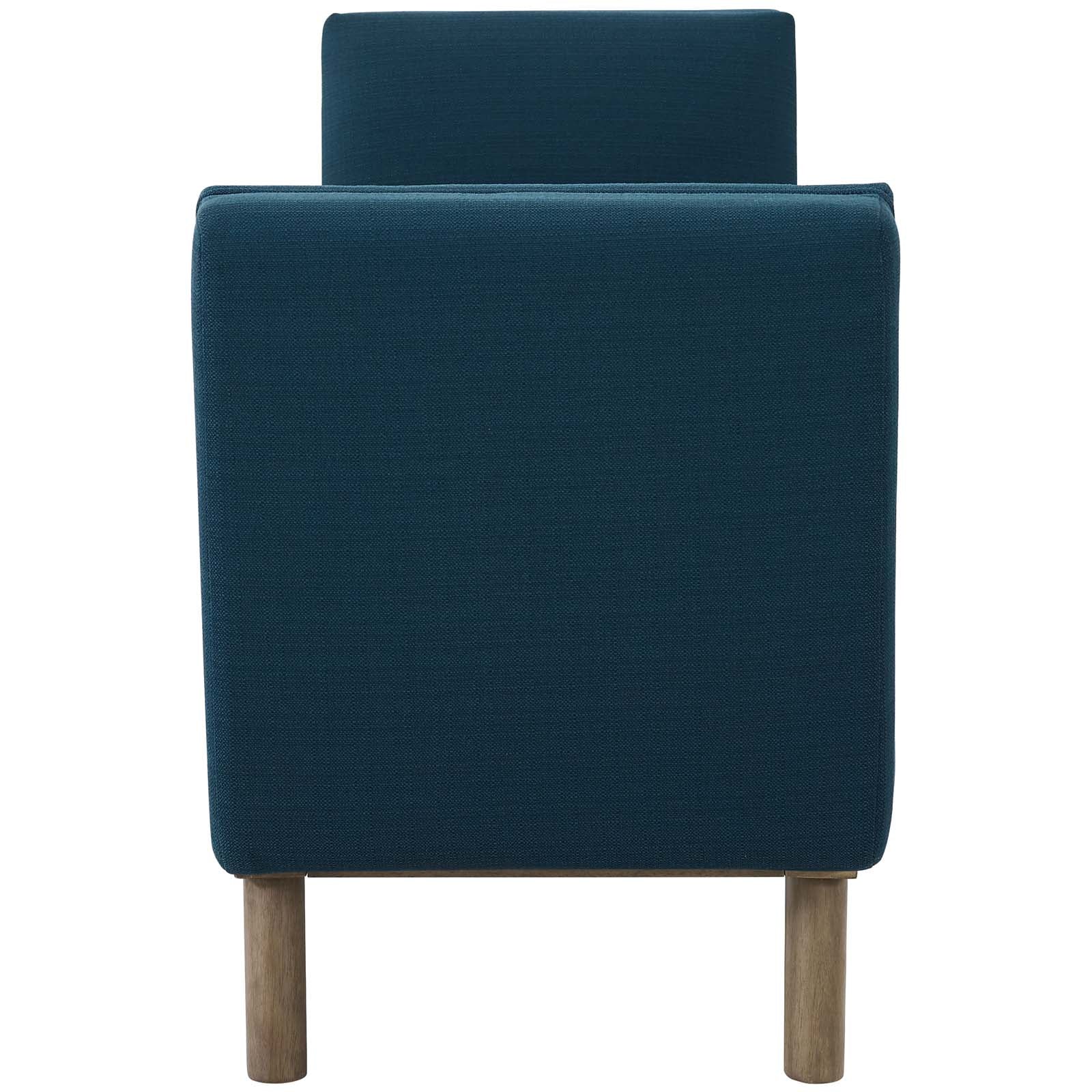 Sail away with the Haven accent bench. Subtle piping blends with biscuit tufting adorn Haven's generously sized seat with artistry and grace. Haven features dense foam padding covered by soft polyester fabric upholstery for premium seating comfort. Organically flared arms rise from this mid-century accent bench to enhance the decor of your living room, lounge area, bedroom, entryway, or home office. Haven's sturdy rubberwood frame can support up to 800 lbs and rests securely on four splayed wooden legs. Set Includes: One - Haven Tufted Button Accent Bench