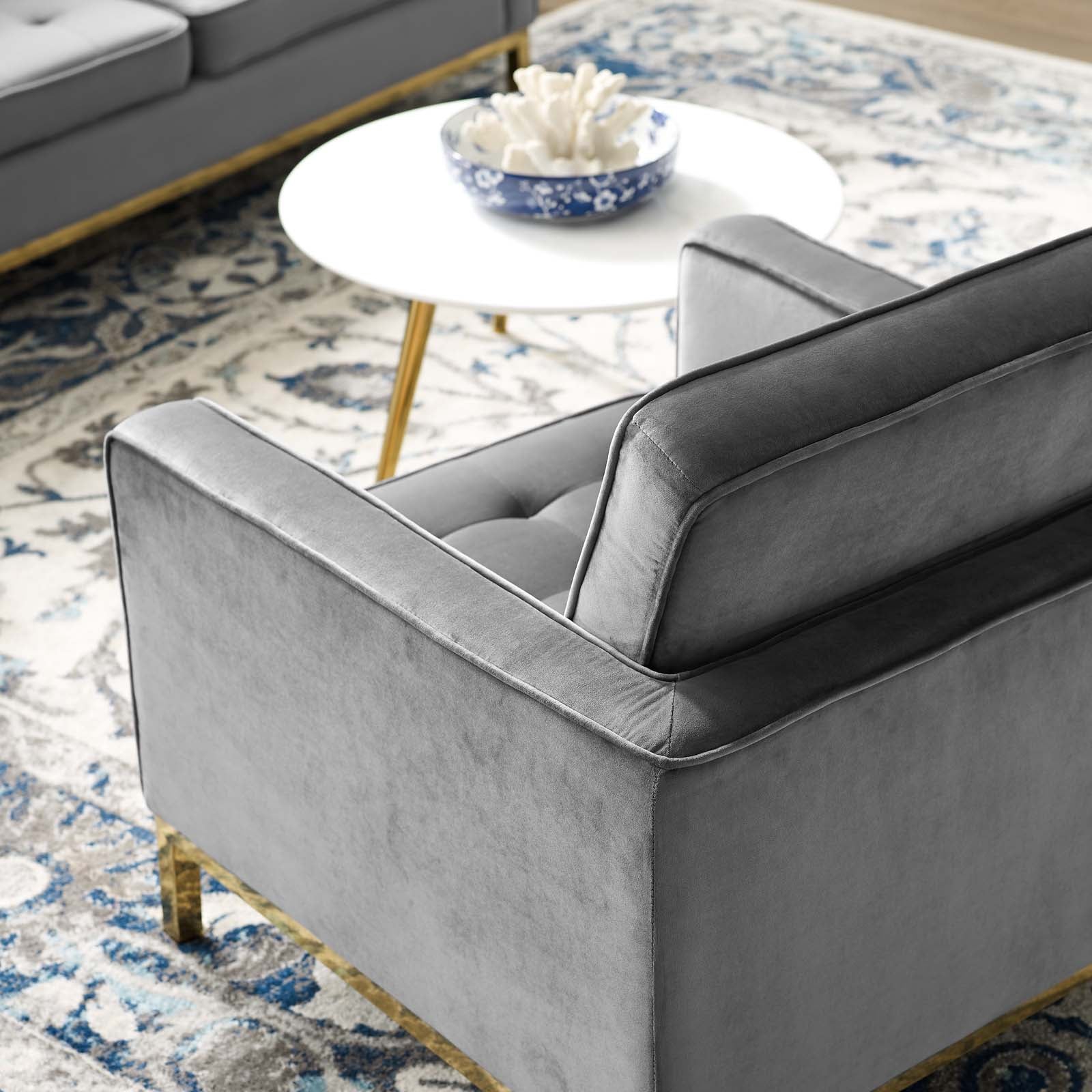 Mid-Century Modern Loft Armchair Tufted Velvet Steel Legs, Dark Gray - Wantism