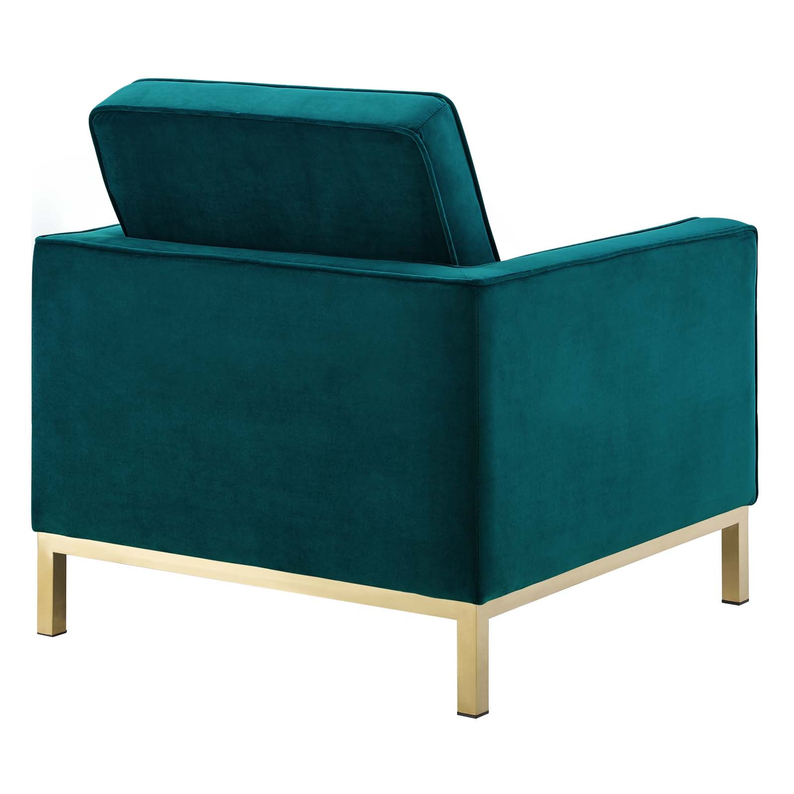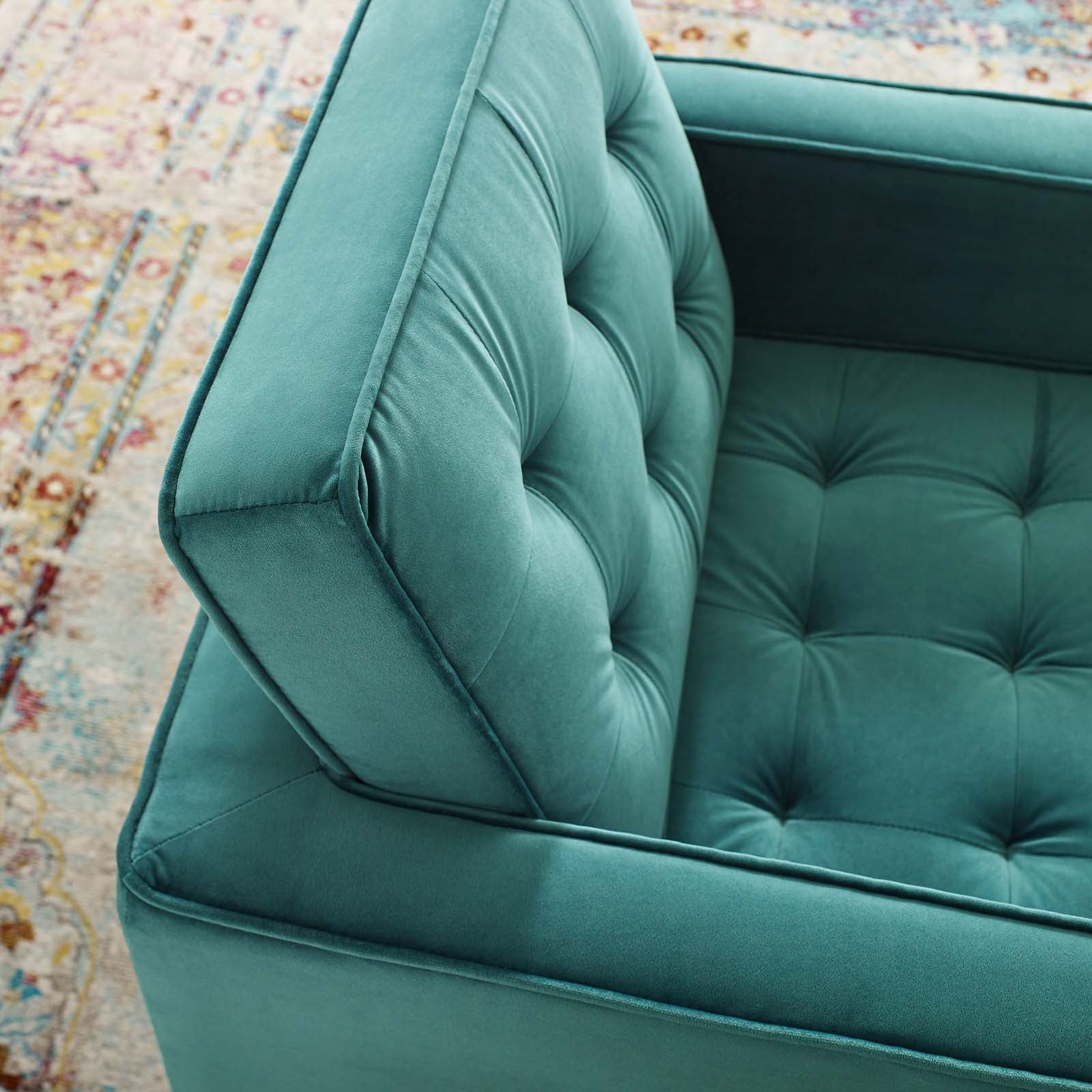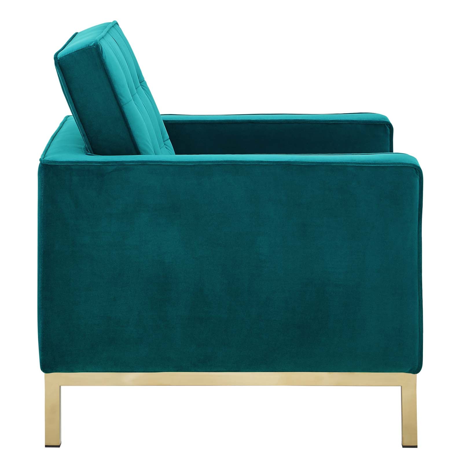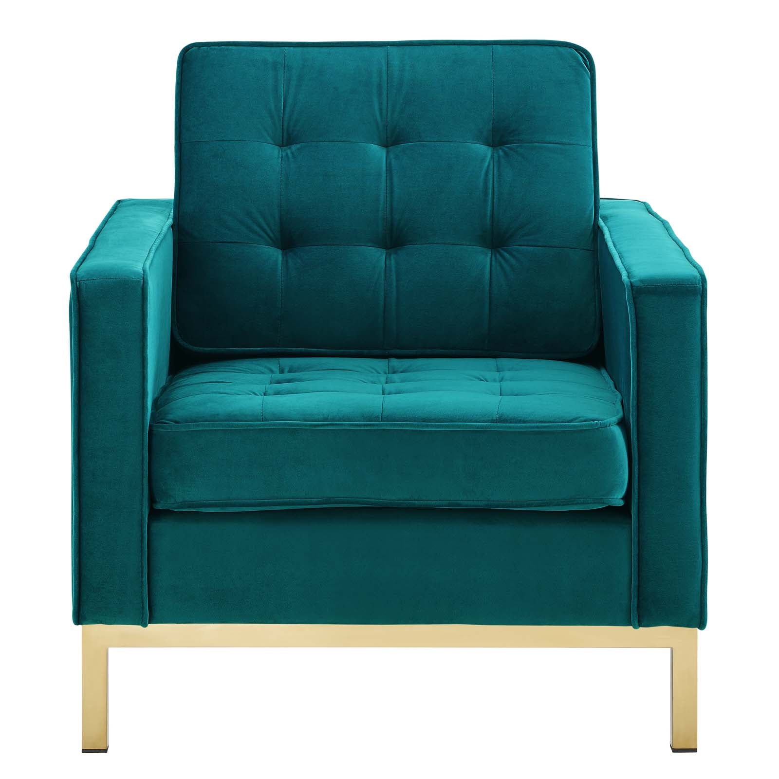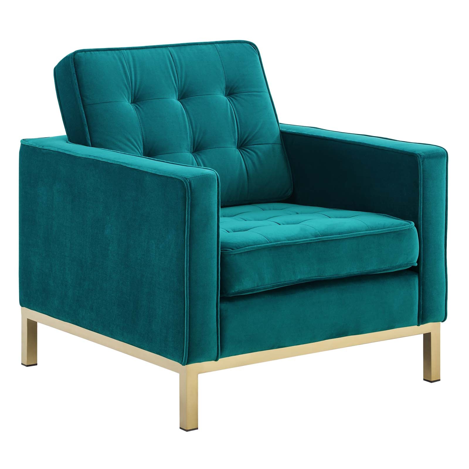 Mid-Century Modern Loft Armchair Tufted Velvet Steel Legs, Teal - Wantism