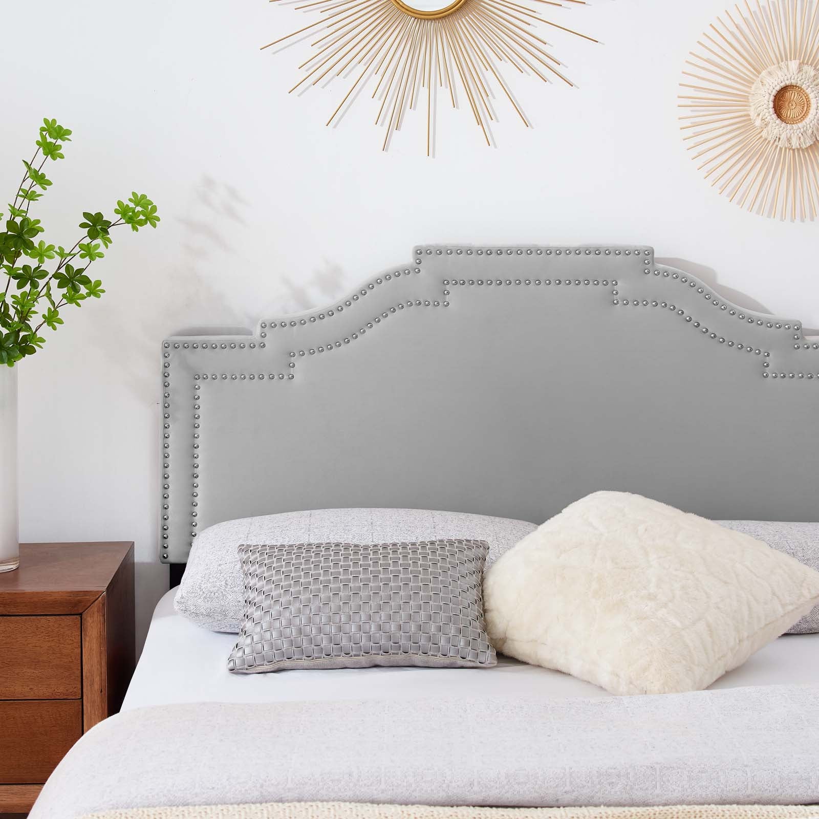 Lucia Full/Queen Performance Velvet Headboard, Light Gray