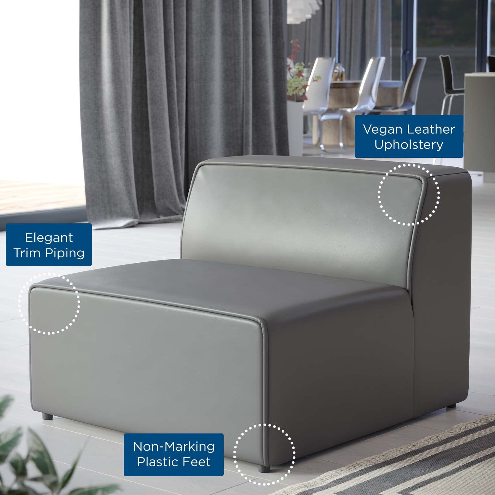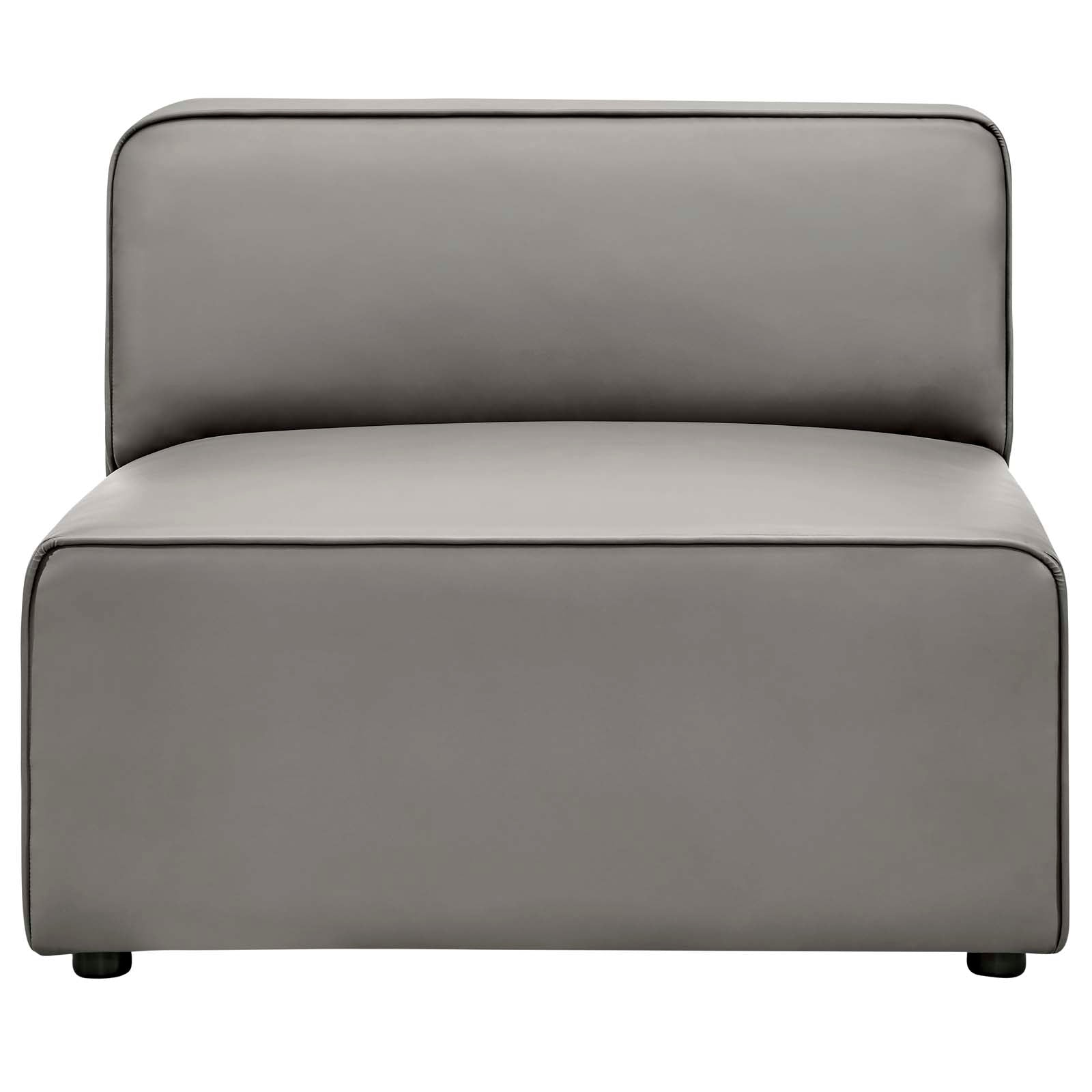 Kick back and relax with the Mingle Vegan Leather Armless Chair. Designed to wash away the hindrances that obstruct visual space, Mingle comes expansively designed with generous seating and dense foam padding that allows for just the right amount of giving. Mingle easily positions according to the needs of the moment and features rich vegan leather upholstery with elegant piping and plastic legs for steady support. Host animated living or lounge room get-togethers with a modular sectional seating assortment perfect for contemporary modern décors. Set Includes: One - Mingle Armless Chair