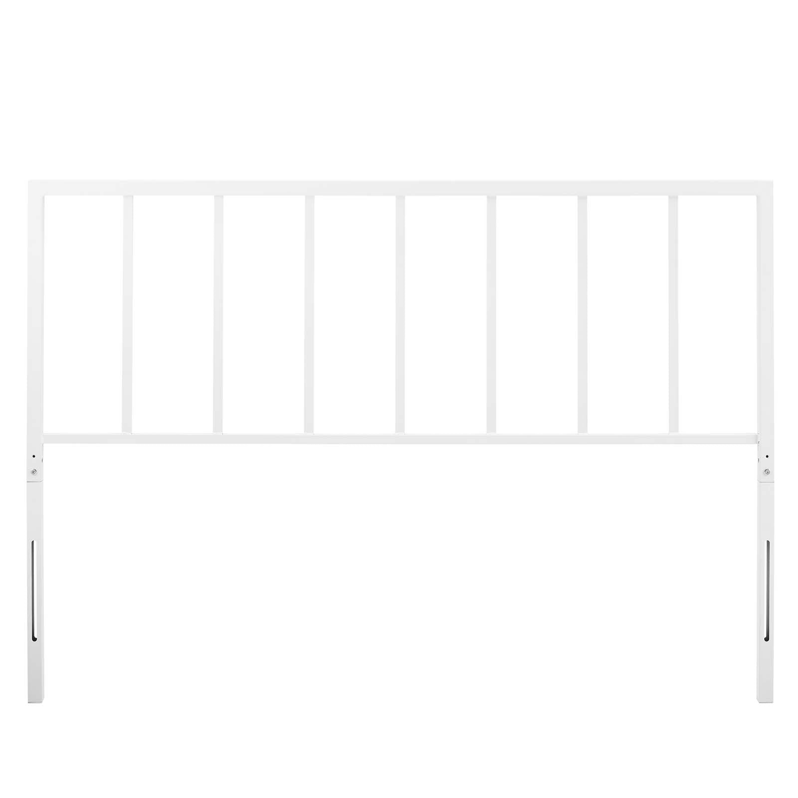 Elevate the look and feel of a master bedroom or guest bedroom with the Tatum Metal Queen Headboard. Featuring a streamlined silhouette with squared lines and spindle detail, this queen size headboard is a timeless design with a contemporary feel. Durable iron metal with a powder coated finish makes up the frame of this headboard for a sturdy construction that lasts. Create an aesthetic backdrop for all kinds of bedding styles with this height-adjustable headboard that's complete with seven different mounting positions to fit most queen beds. Assembly required. Set Includes: One - Tatum Queen Headboard